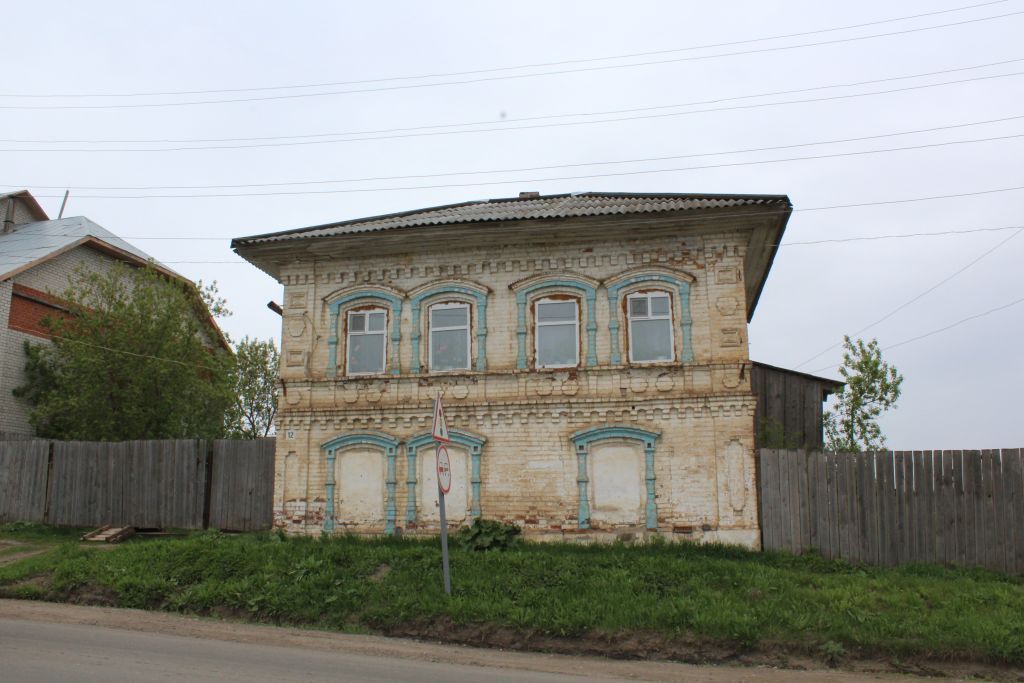 2-этажный кирпичный особняк, возведенный в начале 20 в., состоит из основного объема с жилыми помещениями и деревянной хозяйственной пристройки.Деревянный венчающий карниз здания большого выноса, гладкий фриз на фигурных кронштейнах.Лучковые окна обрамлены наличниками в виде полуколонн. Этажи разделяет междуэтажный карниз на фигурных кронштейнах, под окнами второго этажа пропущен поясок.Углы здания акцентированы пилястрами с кирпичным декором.Купеческий особняк – прекрасный образец т.н. «кирпичного» стиля начала 20 в.В настоящее время используется под жилье.