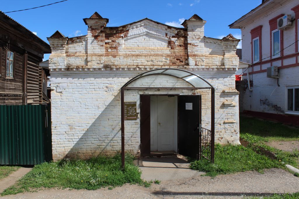 1. Градостроительная охрана1.1 Рядовое расположение ансамбля на линии исторической застройки ул. Коммунистическая1.2 Основные точки восприятия вдоль улицы Коммунистической.1.3 Состав ансамбля: - дом жилой- лавка торговаЛавка торговая4. Архитектурные особенности (экстерьер):4.1 Объемно-пространственное решение – одноэтажное прямоугольное в плане, кирпичное здание, под двускатной крышей.4.2 Материал стен: керамический полнотелый кирпич XIX в.4.3 Материал фасадной поверхности: лицевая кладка, окраска по кирпичу.4.4 Крыша двускатная, кровля металлическая фальцевая.4.5 Архитектурный декор фасадов в стилистике архитектурной эклектики:4.5.1 Килевидное завершение фронтона с венчающим карнизом с гранёными зазубринами и филёнкой. Фланкирующие фронтон парапетные столбики с двускатным навершием. Угловые парапетные столбики с уступчатым карнизом с дентикулами. Выступающий архитрав из лекального кирпича с выпусками под столбиками. Уступчатый карниз с поребриком.4.6 Единственный дверной проем на южном фасаде с клинчатой лучковой перемычкой. Клинчатая арка над входом. Обитые листовым металлом дверные полотна с кованной запорной арматурой.5. Архитектурные особенности (интерьер):5.1 Предмет охраны в интерьере не установлен6. Мемориальные особенности6.1 Усадьба – подлинный объект материальной культуры, формирующий историко-градостроительную среду, свидетельствующий о социально-экономическом развитии региона.