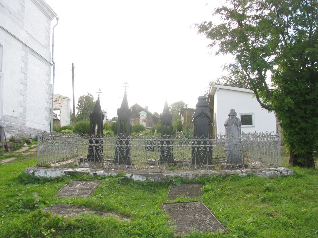1. Градостроительная охрана:1.1 Расположение на территории церкви Иоанна Богослова - севернее трапезной;1.2 Основные точки восприятия с прилегающей территории.Территория объекта культурного наследия в границах ограды церкви Иоанна Богослова: южная граница - 33,5 м от южного фасада памятника; восточная граница - 10 м от восточного фасада памятника; западная граница - красная линия ул. Мамина-Сибиряка; северная граница - 30,5 м от северного фасада памятника.Состав объекта - три чугунных и два каменных художественных надгробия, металлическая кованая оградка на кирпичном цоколе,см. п. 1.12. Архитектурная охрана (экстерьер):2.1 Металлические надгробия (три) в готическом стиле;2.2 Каменное надгробие на могиле И.В. Юрганова из черного гранита;2.3 Каменное надгробие на могиле М.Т. Юргановой из серого мрамора;2.4 Металлическая кованая ограда на витых столбиках, кирпичном цоколе, с калиткой в западной части.3. Мемориальная охрана:3.1 Место родового захоронения представителей крупнейшей чердынской купеческой династии Юргановых, известных благотворителей, общественных деятелей, чьим именем названа центральная улица города.