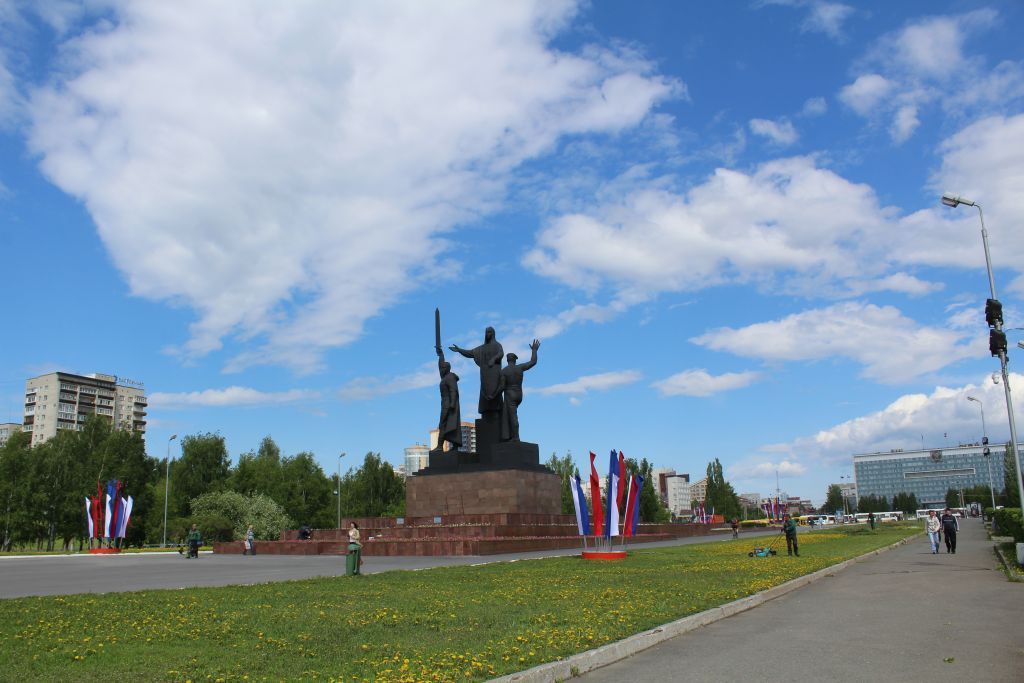 1. Градостроительные особенности1.1Месторасположение памятника: нагородской эспланаде, между ДомомСоветов и драмтеатром. Севернаясторона выходит на ул.Петропавловскую, восточная на ул.Попова, южная на ул. Ленина, западнаяна ул. Борчанинова. Основнойорганизующий пространство эспланадыархитектурно-художественный элемент1.2Основные точки восприятия: со всехсторон прилегающей площади, с южногосклона горы Слудка1.3Композиция и состав:Скульптурная группа на пьедестале,трёхступенчатый стилобат, прилегающаяплощадь.2. Архитектурные особенности (экстерьер):2.1.Круглая трёхфигурная ростоваябронзовая скульптура на разноуровневомпьедестале.2.2Прямоугольный в плане постамент натрёхступенчатом стилобате, имеющийвытянутую к востоку конфигурацию. Ввосточной части стилобата устроенаклумба3. Мемориальные особенности3.1Памятник истории, связанный сосвободительным движением итрудовым подвигом советского народа вовремя Великой Отечественной войны.3.2На западной стороне постаментаустановлена охранно-информационнаядоска.