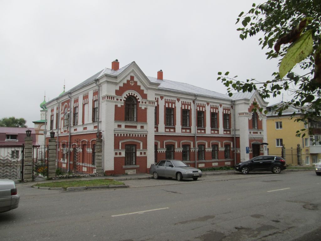 1. Градостроительные особенности1.1 Рядовое расположение на линии исторической застройки ул. 20 лет Победы1.2 Основные точки восприятия вдоль улицы 20-летия Победы, с территории Спасской церкви2. Архитектурные особенности (экстерьер)2.1 Объемно-пространственное решение – здание 2-этажное с подвалом в северной части, в плане сложное, с фланговыми ризалитами на южном фасаде, под скатной крышей2.2 Материал стен – керамический полнотелый кирпич конца 19 в.2.3 Материал фасадной поверхности – лицевая кладка с расшивкой валиком и окраской2.4 Металлическая фальцевая скатная кровля с организованным водостоком2.5 Декоративная отделка фасадов в стилистике архитектурной эклектики:2.5.1 - щипцовые фронтоны фланговых ризалитов южного фасада2.5.2 - обрамление входов и окон 1-го этажа – уплощенная аркатуры, опирающаяся на филенчатый пояс2.5.3 - ступенчатый венчающий карниз с дентикулами и полотенцами в местах примыкания лопаток, рустовка перемычек окон 2-го этажа2.5.4 - обрамление окон 1-го этажа в ризалитах восточного и западного фасадов – бегунец в рамке, опирающийся на полуколонны с кубоватыми капителями, подоконные филенки, горизонтальный руст в пределах стен ризалита2.5.5 - обрамление арочных окон 2-го этажа в ризалитах восточного и западного фасадов – поясок, имитирующий бровку, филенки по флангам и над углами проема, пояс с крупными дентикулами, подоконные филенки2.6 Расположение, габариты, исторический рисунок заполнения оконных проемов, заполнения деревянные двойные створные с глухой фрамугой2.7 Расположение и габариты дверных проемов3. Архитектурные особенности (интерьер)3.1 Планировочное решение – расположение капитальных стен, проемов, лестниц3.2 Сегментные арки в местах сопряжения лестничных клеток и коридоров3.3 Штукатурные профилированные карнизы4. Мемориальные особенности4.1 Подлинный объект материальной культуры, свидетельствующий о развитии социальной сферы в регионе, развитии народного образования в 20 в.