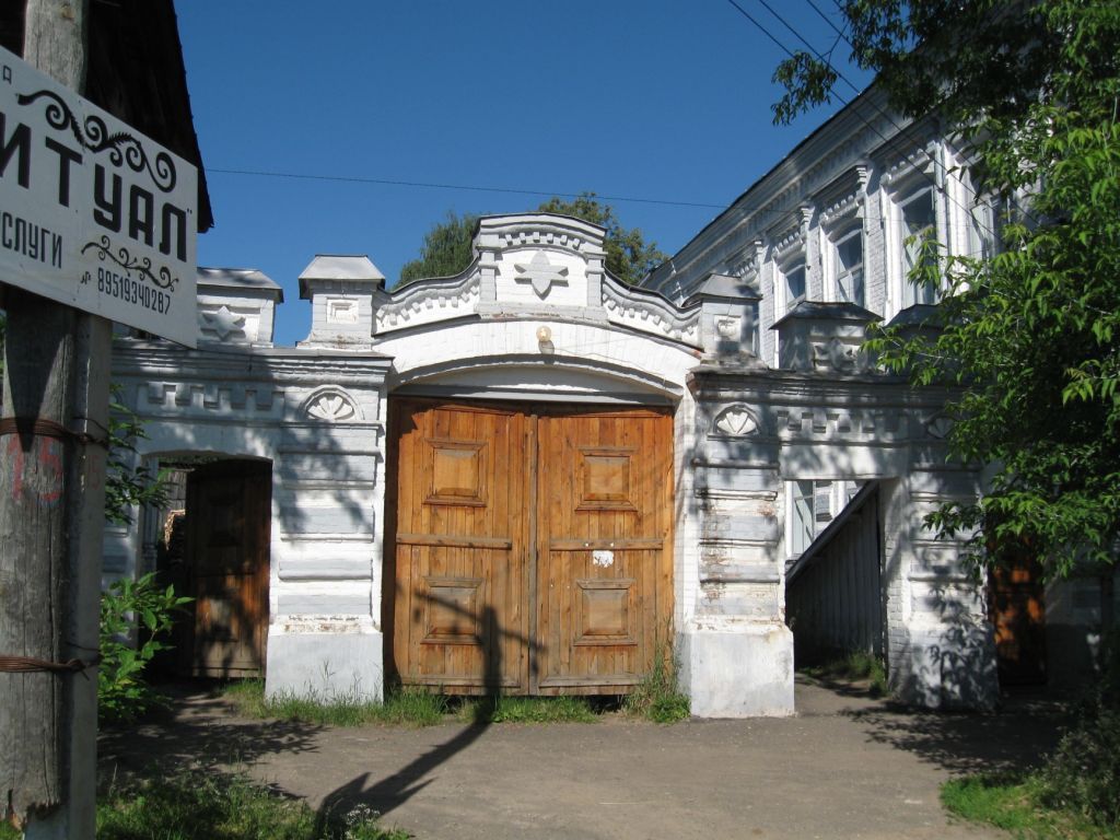 1. Градостроительная охрана1.1Расположение относительно ул. Успенской - постановка по красной линии между домами № 56 и 581.2Расположение в составе усадьбы – вдоль восточной границы1.3Основные точки восприятия вдоль ул. Успенской, из внутреннего двора 1.4Состав усадебного комплекса: дом жилой, флигель, воротаТерритория объекта культурного наследия в составе усадебного комплекса - прямоугольный участок 75х36,5 м в границах: южная граница – южный фасад флигеля; западная граница – 75 м к западу от ул. Успенская (в состав территории включен усадебный огород); северная граница – 5 м к северу от северного фасада дома жилого; восточная граница – ул. Успенская2.Архитектурная охрана (экстерьер)2.1Кирпичные столбы, объединенные клинчатыми перемычками с устройством проходов и проезда. Над проемами выполнены аттики с рельефным декором. Столбы рустованные. Воротные полотна и калитки деревянные. С дворового фасада декор отсутствует