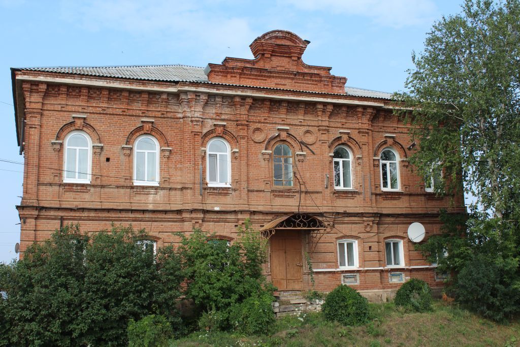 1. Градостроительные характеристики1.1Расположение в центре села на высоком левом берегу р. Бым, восточным фасадом выходит на линию застройки ул. Ленина, южным – на р. Бым1.2Бассейн визуального восприятия с правого берега р. Бым, вдоль ул. Ленина до пересечения с ул. Калинина2. Архитектурные особенности (экстерьер):2.1Объемно-пространственное решение – двухэтажное прямоугольное в плане здание под вальмовой крышей2.2Материал стен – полнотелый керамический кирпич 19 вв.2.3Материал фасадной поверхности – лицевая кирпичная кладка с расшивкой швов2.4Крыша скатная, кровля металлическая фальцевая с организованным водостоком. Цвет кровли и водосточных труб – сурик2.5Характер декоративной отделки фасадов храма в стилистике архитектурной эклектики:2.5.1- фигурный аттик по оси восточного фасада;2.5.2- венчающий профилированный карниз с опиранием на каменные плиты и кирпичные кронштейны;2.5.3- арочные окна 2-го этажа, декорированные архивольтом с замковым камнем в вершине и опирающимся на полубалясины, под окнами горизонтальные филенки;2.5.4- лучковые окна 1-го этажа в обрамлении рамочных наличников, филенки под окнами;- горизонтальная рустовка стен 1-го этажа с веерным преломлением над окнами;2.5.5- междуэтажный профилированный карниз;2.5.6- фланкирующие и межоконные филенчатые лопатки в уровне 2-го этажа, с фигурными полотенцами, опускающимися на 1-й этаж;2.5.7- парадный вход по оси восточного фасада с каменным крыльцом и металлическим кованым навесом;2.5.8- цоколь облицован пилеными каменными блоками с валиком и гуськом в верхней части2.6Расположение, количество, габариты, историческая расстекловка оконных проёмов. Оконные заполнения деревянные двойные остекленные2.7Расположение, количество, габариты дверных проёмов, в том числе не используемых3. Архитектурные особенности (интерьер):3.1Планировочное решение – расположение капитальных стен, столбов, габариты и конфигурация проёмов3.2деревянная двухмаршевая лестница на 2-й этаж с ограждением из точеных балясин4. Мемориальные особенности4.1Подлинный объект материальной культуры, свидетельствующий о развитии государственной власти и управления, архитектуры и строительного искусства.