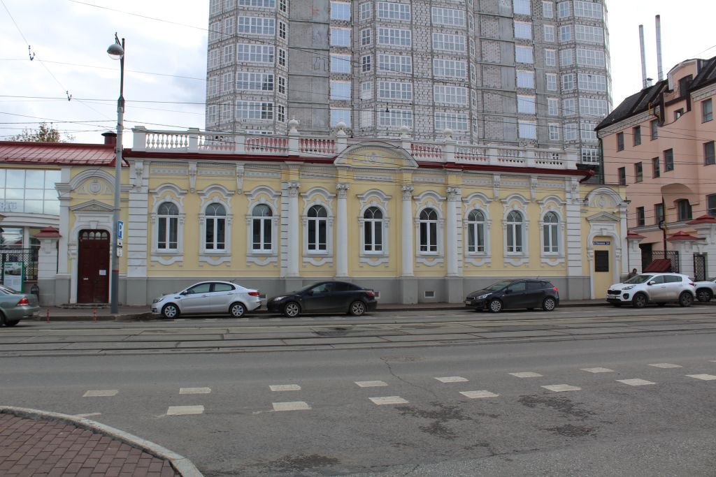 1. Градостроительная охрана1.1Рядовое расположение на линии исторической застройки ул. Ленина1.2Бассейн визуального восприятия в границах линий застройки ул. Ленина от дома № 13а до условной линии, соответствующей западному фасаду дома по ул. Ленина, 302. Архитектурная охрана (экстерьер)2.1Объемно-пространственное решение – прямоугольное в плане здание под скатной кровлей с примыкающими вдоль улицы фрагментами ограды2.2Материал фасадной поверхности восточного, северного и западного фасадов– штукатурка2.3Архитектурный декор:2.3.1- центральный ризалит северного фасада с 4 колоннами коринфского ордера, с лепными вазонами на парапете2.3.2- аттик по оси симметрии главного фасада с лепным декором в тимпане2.3.3- обрамление оконных проемов – лепные наличники с кронштейнами, архивольтами, фигурными сандриками2.3.4- обрамление фальшпроема в западной части северного фасада – наличник с сандриком-фронтоном2.4Парапет с балясинами, профилированный карниз на кронштейнах, лепные вставки между ними2.5Парадный вход – обрамление портала, аттик, филенчатые двери2.6Ворота с оградой восточнее и западнее здания – металлические кованые на кирпичном оштукатуренном цоколе с кирпичными столбами