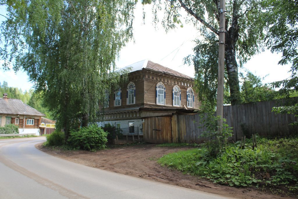 1. Градостроительные особенности1.1 Расположение на пересечении ул. Карла Маркса и Дорожного переулка в Заречной части поселения – фиксация квартальной сетки. 1.2 Основные точки восприятия вдоль ул. К. Маркса, Дорожного переулка.2.Архитектурные особенности (экстерьер)2.1 Объемно-пространственное решение – прямоугольное в плане 2-х этажное полукаменное здание под вальмовой крышей, с пристройкой-сенями и крытым крыльцом на южном фасаде, крытой галереей вдоль восточного фасада. 2.2 Крыша стропильная скатная, кровля металлическая фальцевая. 2.3 Материал стен – керамический полнотелый кирпич XIX в. первый этаж, дерево во втором этаже.2.4 Материал фасадной поверхности: керамическая облицовка стен 1-го этажа, горизонтальная дощатая обшивка с подрезкой стен 2-го этажа, каменные плиты в облицовке цоколя.2.5 Характер декоративной отделки фасадов – уникальное сочетание деревянного и керамического декора – единственное в Пермском крае:2.5.1 Венчающий карниз с метопами и триглифами, керамическими розетками и кронштейнами, керамические рельефы в виде пучков аканта в метопах.2.5.2 Междуэтажный карниз с кронштейнами и керамическими розетками на нижней грани. Фриз с триглифами и полотенцами, керамические рельефы в виде пучков аканта в метопах.2.6.3 Арочные окна второго (деревянного) этажа. Наличники выполнены из керамики в виде арки с брильянтовым рустом с замковым камнем, покрытым растительным орнаментом. Арка опирается на керамические капители канеллированных полуколонок (тело колонны выполнено из дерева) с украшенными растительным орнаментом базой и капителью. Колонки на керамических подставках, покрытых бриллиантовым рустом. 2.6.4 1-й заниженный кирпичный этаж на главном северном фасаде облицован керамической плиткой. Цоколь выделен подоконным карнизом в виде валика и облицован каменными плитами. 2.6.5 Дверной проем (заложенный) в восточной части северного фасада в обрамлении деревянного резного наличника. 2.6.6Деревянные наличники пристройки-сеней на южном фасаде 2.7 Въездные ворота с калитками, под кровлей, находящиеся в неразрывной связи со строением и имеют такое же декорирование карниза и фриза как и основной объём здания. 2.8 Палисадник перед северным фасадом с оградой: чугунные литые столбики с навершием в виде цветка, узорчатой капителью, канеллированным стволом и богато декорированной базой. Кованная решётка, с проходящим по верху гнутым орнаментом. Кирпичное основание ограды облицовано крупными изразцами с растительным рельефным орнаментом. 2.9 Расположение, габариты, конфигурация, историческая расстекловка оконных проемов. Материал оконных рам – дерево. 2.10 Расположение, габариты, конфигурация дверных проемов. 3. Архитектурные особенности (интерьер)3.1 Планировочное решение – анфиладное 3.2Оштукатуренный круглый столб на стыке перегородок 2-го этажа 3.3Концентрическая потолочная розетка в помещении 1-го этажа 3.4Концентрическая потолочная розетка с акантом в помещении 2-го этажа 3.5Профилированные потолочные карнизы Двупольные филенчатые двери в помещениях 2-го этажа Наличники окон и подоконники 2-го этажа 4. Мемориальные особенности4.1Подлинный объект материальной культуры, свидетельствующий о развитии архитектуры и строительного искусства