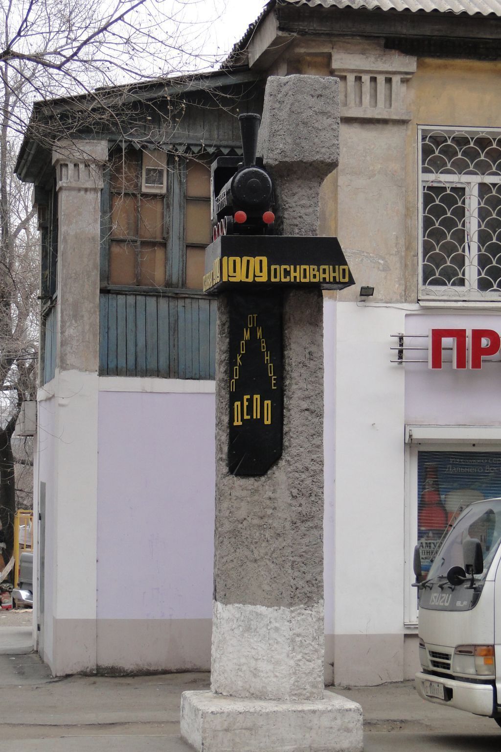 Памятный знак в честь создания в 1909 году Первореченского локомотивного депо
