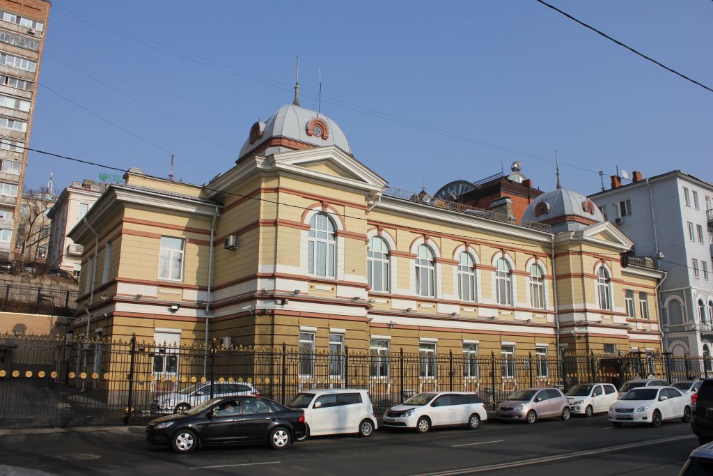 1. Градостроительные характеристики:- местоположение в планировочной структуре центральной части города Владивостока по адресу: Приморский край, г. Владивосток, ул. Светланская, 71;- градостроительные характеристики здания, занимающего положение на северной стороне ул. Светланской, выполняющего градообразующую роль в формировании объемно-пространственной и планировочной структуры центральной части г. Владивостока, представляющего собой пример парадной исторической общественной застройки;- южный (главный) фасад здания ориентирован на ул. Светланскую, северный – ул. Пушкинскую, восточный примыкает к жилому дому №73, западный – боковой (вдоль него устроен проезд во двор).2. Объемно-пространственная композиция и пространственно-планировочная структура здания:- Г-образное в плане здание;- первоначальная пространственно-планировочная структура образована продольными и поперечными капитальными несущими стенами и перекрытиями в габаритах капитальных стен, сформированная системой помещений объединенных по вертикали двумя лестничными клетками, по горизонтали - коридорами и холлами;- конфигурация крыши, высотные отметки по конькам кровли.3. Конструкции и материал фундаментов, капитальных стен, отделки фасадной поверхности:- конструкции и материал ленточных бутовых фундаментов под наружные и внутренние несущие стены, выполненные из необработанного и тесанного природного камня;- конструкции и материал капитальных стен из полнотелого керамического кирпича; - перекрытия плоские, часть покрытий имеют криволинейную конструктивную систему;- лестничные марши: по металлическим косоурам с бетонными ступенями;- крыша вальмовая, разновысотная, сложной конфигурации с двумя шатрами (четырехлотковые сомкнутые кровли со шпилями) над ризалитами главного фасада, покрытие кровли и шатров металлическое с фальцевыми замками, водосток организованный, слуховые окна круглые с фигурным обрамлением;- материал и характер отделки фасадных поверхностей: гладкая штукатурка с последующей покраской, штукатурный раствор под шубу с последующей покраской.4. Композиция и архитектурно-художественное решение (деталировка) фасадовВ архитектуре здания использованы характерные для банковских зданий конца XIX - начала XX века мотивы ренессанса и позднего классицизма. Декоративные элементы фасадов выполнены выпусками кирпича и штукатурным раствором. Южный фасад- несимметричная композиция северного фасада с двумя ризалитами по краям;- первый этаж оштукатурен декоративной штукатуркой и расшит ленточным рустом;-фигурные кронштейны поддерживают подоконные полочки под окнами первого этажа;- между первым и вторым этажами проходит три пояска: нижний – выше окон первого этажа; верхний – в уровне подоконников второго этажа;- под полукруглыми окнами второго этажа, между верхними и среднимипоясками, на лежачих прямоугольных накладках размещены другие прямоугольные накладки и по два диска по краям;- гладко оштукатуренные стены второго этажа (за исключением ризалитов)расшиты ленточным рустом;- в уровне верхней части оконных проемов проходит поясок простого профиля, на который опираются профилированные архивольты с фигурными замковыми камнями с пояском над ними;- венчающий карниз, карнизы треугольных фронтонов ризалитов имеют сложный профиль;- трибуны к
