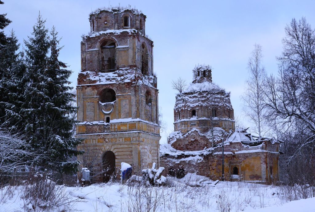1. Градостроительные характеристики: Местоположение: центральная часть деревни Новое.2. Объемно-пространственная композиция: Объёмно-планировочная композиция храма, состоящая из следующих частей: двухсветный объём (главная церковь) типа «восьмерик на четверике», к двусветному четверику с севера и юга примыкают симметрично расположенные приделы. К четверику с востока примыкает трехчастный алтарь. С западной стороны от основного объема стоит четырёхъярусная столпообразная колокольня с папертью в первом ярусе и со световым барабаном четвертого яруса.3. Планировочные решения: Пространственно-планировочная структура интерьеров в пределах капитальных стен и перекрытий, в том числе сводчатые перекрытия: - предельные церкви и восьмерик перекрыты сомкнутыми сводами; притвор, второй ярус колокольни – лотковыми сводами, первый ярус колокольни, дьяконник, жертвенник и центральная абсида – коробовыми сводами, опирающимися на наружные стены и подпружные арки; местоположение, конфигурация, габариты внутристенных кирпичных лестниц, ведущих в объем колокольни.4. Конструктивное решение, материал и техника исполнения: Тип кладки стен - кладка из красного кирпича.5. Композиционное и архитектурное решение фасадов: Композиционное решение и архитектурно-художественное оформление фасадов: наличники оконных и дверных проемов в виде полуколонок с навершием сложного профиля, карнизом с обломами «валиком» и «гуськом» и профильным «кокошником» «гребешком» с волютами по краям; рустовка, круглые и прямоугольные филенки на колокольне, горизонтальная тяга, разделяющая пополам четверик и отделяющая аттиковую часть восьмерика; многопрофильный карниз, венчающий все объемы здания; междуэтажный карниз между ярусами колокольни, двойной карниз на притворе и приделах; пилястры, расчленяющие все стены церкви и колокольни; расположение и габариты прямоугольных с арочным завершением оконных и дверных проемов.6. Архитектурно-художественное оформление интерьеров: Элементы декоративного оформления интерьеров: форма, габариты, местоположение овальных, прямоугольных и с арочным завершением ниш во внутренних стенах абсиды, центральной части четверика, северного придела; откосы оконных проемов восьмерика с «рассветами»; живопись XIX в.: композиция над южным входом «Несение креста», над северным – «Се человек»; остовы четырёхъярусного и двухъярусного иконостасов; кованные металлические и деревянные филенчатые с остеклением дверные заполнения со сторон северного и южного фасадов; кубоватые металлические решетки на оконных проемах; могильная плита с фамилиями представителей дворянского рода Дубровских.