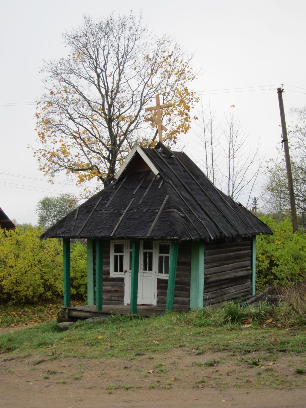 - местоположение: здание часовни расположено в центре деревни Полосы, на высоком косогоре, на перекрёстке просёлочных дорог; место «закреплено» угловыми камнями и порожным, с плоским верхом, большим валуном;- объемно-пространственная композиция: габариты объема прямоугольной рубленой часовни с папертью на «выпусках» и полувальмовой крышей; паперть с 4-мя столбами главного фасада;- планировочная структура: прямоугольная клеть, с «выпусками» нижних венцов на западном фасаде;- композиционное и архитектурное решения фасадов: симметричная композиция главного фасада; симметрично устроенный вход с остеклённой дверью и двумя окнами; северное окно по центру бокового фасада; рубка сруба в шип и «чистый угол»; место установки и габариты шестиконечного венчающего деревянного креста; форма, габариты и расположение дверных и оконных проёмов; наличники оконных и дверных проёмов; габариты столбов паперти; характер настилки пола паперти;- стены: фундаменты из отдельных крупных валунов; стены из круглых с затёской изнутри сосновых брёвен; характер рубки углов часовни - «в чистый угол»- перекрытия: подшивной из доски «сомкнутый свод» помещения часовни; высота пят и верхней точки подшивного потолка;- крыша: тип - стропильная, полувальмовая; конструкции - из деревянных стропил со свесами, обрешетка - жерди, покрытие ремонтное - рубероид по обветшавшей щеповой кровле; высотные отметки конька и углы скатов крыши; размеры западного и восточного фронтончиков с причелинами;- интерьер: габариты и форма подшивного потолка «неба» помещения часовни; широкие половые тёсаные доски-пластины; абрис входного проёма с боковыми окнами; фигурные окончания свесов стропил; окраска подшивного «неба» голубым колером; наличники оконных и дверных проёмов в интерьере помещения часовни; расстекловка окон часовни; филёнчатые остеклённые двери; место иконной полки; место скамьи под установку гроба.