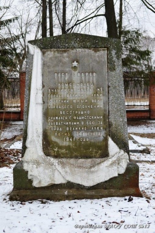 Могила комсомольца Васи Зверева, участника обороны г. Великие Луки от немецко-фашистских захватчиков в июле-августе 1941 г.