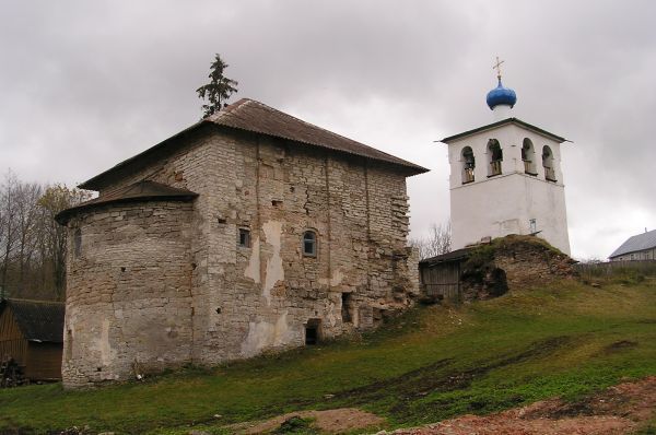 Объемно-пространственная композиция здания, включающая: высоту четверика от уровня первоначальной дневной поверхности до обреза первоначальной кладки стен; высоту колокольни от уровня первоначальной дневной поверхности до венчающего креста;наружные архитектурные формы: первоначальные и исторические параметры и формы четверика, (кроме консервативной кладки, новых вычинок стен и проемов 1963-64гг.); первоначальные и исторические фрагменты стен трапезной; первоначальные и исторические параметры и формы колокольни; характер первоначальных или исторических покрытий колокольни и главы;фасады: расположение первоначальных и исторических проемов, ниш, киотов, лопаток; первоначальные и исторические параметры и формы дверных и оконных проемов, ниш, киотов, лопаток, столбов колокольни; архитектурные детали фасадов: характер членения фасадов; фрагменты первоначальной обмазки; характер и тип обмазки и колера;интерьеры: подклет, ярусы четверика; пространственные характеристики интерьеров; высота от уровня первоначального пола до сводов, высота порогов; параметры и формы арок и распалубок, дверных и оконных проемов, ниш; первоначальные и исторические планировочные характеристики; расположение дверных, оконных и служебных проемов, ниш; каналы связей, первоначальные и исторические лестницы, каналы от закладных брусьев и тябел иконостасов; первоначальная и историческая обмазка; характер и тип обмазки и колера;конструкции: все подлинные конструкции независимо от их технического состояния;фундаменты: тип фундаментов, глубина заложения, материал, связующие, техника кладки;стены: первоначальный материал стен (известняковая плита), связующие, техника кладки, фрагменты стен, их расположение; исторические вычинки, закладки, их материалы, связующие, характер кладки, обмазка, колер;перекрытия: конструкции и уровни перекрытий подклета, ярусов четверика и колокольни; типы перемычек дверных и оконных проемов; конструкции лестниц четверика и колокольни;детали: типы деталей металлических креплений дверных проемов (поставы); следы и металлические детали креплений осветительных приборов (кольца); тип деталей креплений для подвески колоколов; граффити по обмазке в интерьерах колокольни;колокола XVI-XIX вв.
