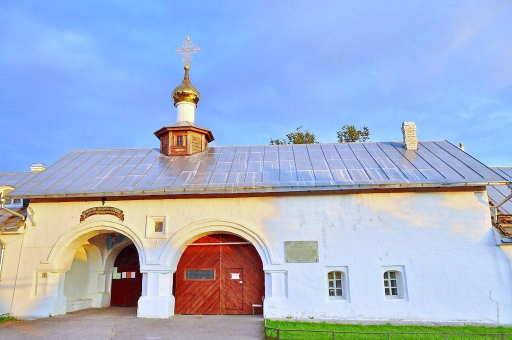 Объемно-пространственная композиция, включающая одноэтажный каменный прямоугольный в плане объём, вытянутый в направлении восток- запад, состоящий из объёма ворот и объёма караульни; габариты в плане; композиция и декор фасадов: исторические места расположения, конфигурация и параметры проёмов ворот; каменный декор ворот, в том числе восстановленный на основании проекта реставрации: профилированные архивольты арок, иконные ниши с рамочными наличниками, их местонахождение, параметры, профиль; исторические места расположения, конфигурация и параметры оконных проемов караульни; прямоугольные оконные ниши караульни; обмазка, исторический колер фасадов караульни; материал и конструкции: фундаментов, их материал, глубина заложения, связующие; материал и связующие стен и столбов ворот - известняковая плита на известковом растворе; техника кладки, толщина стены в центральной части ворот; параметры столба и пилонов - ступенчатое основание, восьмигранный ствол столба и шестигранный - пилонов, ступенчатый переход от ствола к пятам свода; материал и связующие караульни - известняковая плита на известковом растворе, техника кладки, толщина стен; местоположение, конструкция, параметры дверных проемов караульни; ниши для запорных устройств караульни; перекрытия: ворот и караульни, их материал - известняк, основные параметры; конструктивное решение ворот - цилиндрические своды, поддерживаемые пониженными подпружными арками; конструктивное решение караульни - сомкнутый свод с распалубками над проёмами; интерьеры: трёхчастная планировка ворот и пространственные связи; иконная ниша с рамочным наличником над центральной аркой западного пролёта ворот, ее местонахождение, параметры и профиль; каменная лавка в северо-восточной части ворот; пространственные характеристики помещения караульни; металлические детали: связи, элементы запорных устройств.