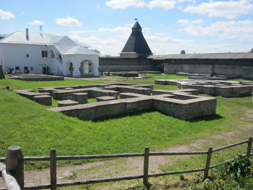 Планово-пространственная композиция, фиксируемая фундаментами и сохранившимися фрагментами стен: четырехстолпного четверика сполуциркульной центральной и двумя прямоугольными боковыми апсидами; западного и южного притворов четверика; крыльца; бесстолпного южного придела на подклете; притвора придела;членение фасадов четверика и придела лопатками, особенности расположения и ширина лопаток;окна, их местонахождение, параметры, конструкция:окно со ступенчатым откосом в подклете придела; щелевидные окна боковых апсид четверика;материал и глубина заложения фундаментов - валуны на материковой скале; материал и связующие стен - тесаные известняковые плиты на известково-песчаном растворе; толщина стен;конструкция и параметры перекрытия подклета придела - коробовый свод;интерьеры: габариты всех помещений в плане; габариты в плане и форма столбов четверика - округлые со скошенными плоскостями, обращенными к поперечной оси храма; габариты в плане и форма апсид четверика - полуциркульной центральной и трапецевидных боковых; внутристенная алтарная ниша придела, ее габариты в плане; местонахождение и габариты внутристенных ниш; местонахождение и габариты в плане дверных проемов; плитяной пол; габариты в плане престолов главного и придельного храмов;
