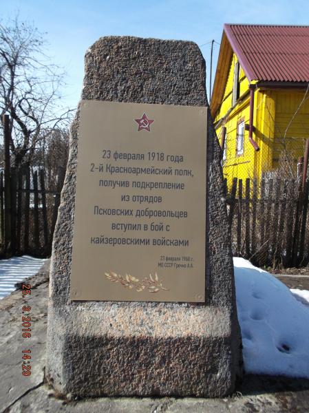 Памятное место, где проходили в 1918 г. бои 2 Красноармейского полка молодой Красной Армии с немецкими интервентами