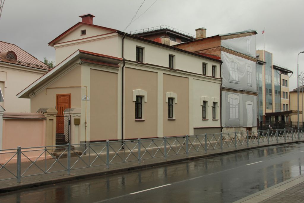 Объемно-планировочное решение: здание двухэтажное – кирпичное, прямоугольное в плане; внутренний объем здания состоит из помещений различных размеров, расположенных в определенном порядке;- композиция и декор фасадов: тянутый профилированный карниз; лепная профилированная междуэтажная тяга; лопатки между нишками; неглубокие нишки восточного фасада; габариты и форма оконных проемов; полочки с декоративными подвесами, имитирующих сандрики над оконными проемами в первом этаже; характер фасадной отделки (штукатурка, окраска);- фундаменты: тип - ленточный, материал – каменный, глубина заложения, связующие;- крыша: конструкция, тип (низкая, деревянная стропильная, металлическая кровля); высотные отметки конька, углы уклона скатов;- стены: материал (каменные, оштукатурены и окрашены), связующие, толщина стен, габариты и форма стен в плане;- перекрытия: материал, конструктивное решение и параметры;- интерьеры: пространственные характеристики, пространственные и визуальные связи помещений.