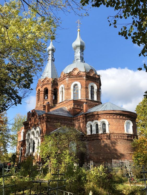 Объёмно-планировочная композиция храма, состоящая из следующих частей: крестообразный в плане основной объём, образованный пересечением главного продольного нефа, перекрытого цилиндрическим сводом с распалубками, и поперечного нефа - трансепта, перекрытого цилиндрическим сводом с распалубками; квадратный в плане четверик, воздвигнутый над средокрестием основного объёма; восьмерик с окнами в каждой из граней, опирающийся на четверик и перекрытый полусферическим куполом; небольшой купол на восьмигранном глухом барабане, покоящемся на восьмигранном постаменте над куполом восьмерика, увенчанный восьмигранной луковидной главкой; полукруглая в плане центральная апсида, примыкающая к восточному выступу основного крестообразного объёма храма; прямоугольные в плане, вытянутые по оси север-юг, палатки-компартименты, встроенные во внутренние углы основного крестообразного объёма и перекрытые коробовыми сводами с распалубками; северо-восточная и юго-восточная палатки, являющиеся боковыми пониженными апсидами северного и южного приделов; северо-западная и юго-западная палатки, имеющие входы непосредственно снаружи, являющиеся притворами северного и южного приделов; четырёхъярусная колокольня типа «восьмерик на четверике», примыкающая с запада к основному объёму храма; два нижних яруса колокольни, представляющие собой прямоугольный в плане, вытянутый по оси север-юг, объём, в северной части которого расположена деревянная лестница всхода на второй ярус, поэтажно расположены в южной части небольшие палатки; центральная часть первого этажа, служащая притвором, палатка, расположенная в центральной части второго этажа неизвестного назначения; третий ярус квадратный в плане, с лестницей подъёма на четвёртый ярус восьмигранный в плане открытый ярус звонов; колокольня покрыта восьмигранным шатром, увенчанным восьмигранной луковидной главкой на восьмигранном глухом барабане; главный купол на цилиндрическом световом барабане, покоящемся на восьмигранном постаменте над сводом второго яруса, увенчанный шестнадцатигранной луковидной главкой; кирпично-штукатурный декор: наличники над всеми оконными проёмами в форме сложно-профилированных треугольных сандриков, а также архивольтов с полуциркульным и килевидным завершением, опирающихся на точёные полуколонки; кирпичные перегородчатые венчающие и межъярусные карнизы; двухчастный карниз, проходящий в уровне арочных пят оконных проёмов восьмерика и проёмов четвёртого яруса колокольни; точёные трёхчетвертные угловые колонки на северо-западном и юго-западном углах третьего яруса колокольни; трёхчастные арочные фронтоны-кокошники на северном и южном фасадах храма; трёхчастные двухуровневые арочные кокошники над каждой гранью восьмерика и четвёртого яруса колокольни; восьмигранные постаменты в форме сомкнутых полуциркульных арок-кокошников под барабанами куполов храма и колокольни; фигурные обрамления окон второго яруса повышенного центрального объёма в виде трёхчастных кокошников-акротерий, опирающихся на резные полуколонки; входные порталы над западным входом – перспективный портал: полуциркульная арка, опирающаяся на точёные трёхчетвертные колонки; валиковая тяга, проходящая в уровне низа оконных проёмов первого этажа по всем фасадам здания; профилир
