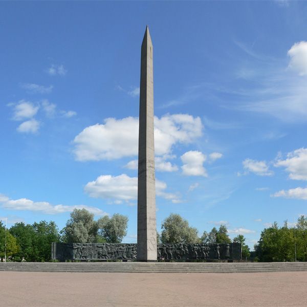 1. Градостроительные характеристики: Местоположение: восточная часть города Псков, на пересечении Крестовского и Ленинградского шоссе.2. Объемно-пространственная композиция: Бетонный обелиск на ступенчатом основании с вырубленными ступенями со стороны юго-восточного фасада, изображенный в виде трехгранного русского штыка, в нижней части которого пятиконечная звезда, серп и молот. Рядом с ним – бронзовый барельеф, выполненный в виде группы фигур солдат Советской армии, партизан, матросов на бетонной стенке. Его композиция отражает победоносный путь Красной Армии с 1918 года до побед в Великой Отечественной войне.3. Строительные конструкции, материал и техника исполнения: Обелиск и его основание, а также задняя стенка барельефа – материал – бетон; барельеф – материал – бронза.4. Декоративно – художественные особенности: По бокам бронзового барельефа выгравирован текст: справа – «…ТОВАРИЩИ, БУДЬТЕ НАЧЕКУ, БЕРЕГИТЕ ОБОРОНОСПОСОБНОСТЬ НАШЕЙ СТРАНЫ И НАШЕЙ КРАСНОЙ АРМИИ, КАК ЗЕНИЦУ ОКА…» В.И.ЛЕНИН»;слева – «ДОБЛЕСТНОЙ РАБОЧЕ – КРЕСТЬЯНСКОЙ КРАСНОЙ АРМИИ, ЕЁ БОЙЦАМ, КОМАНДИРАМ И ПОЛИТРАБОТНИКАМ В ЧЕСТЬ ПЕРВЫХ И СЛАВНЫХ ПОБЕД НАД ИМПЕРИАЛИСТИЧЕСКИМИ ЗАХВАТЧИКАМИ В ФЕВРАЛЕ 1918 ГОДА».Шрифт, габариты символов, орфография, исторический текст, вид исполнения надписи.