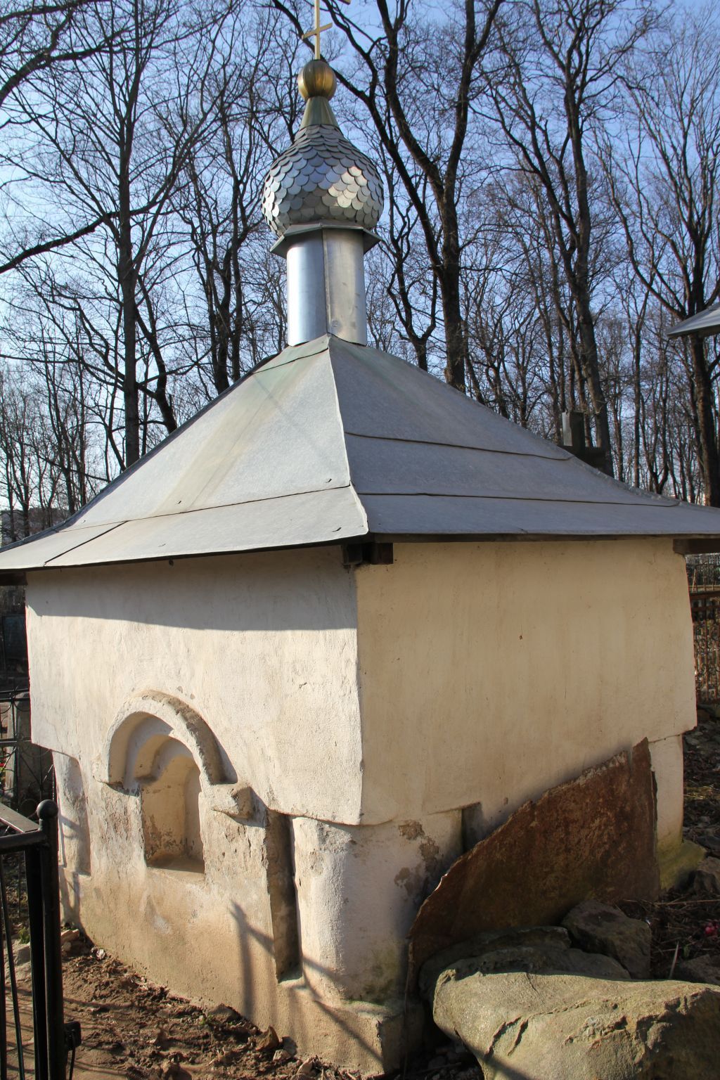 1. Местоположение объекта культурного наследия: часовня-усыпальница расположена на Завеличье на Мироносицком кладбище в 4-х метрах от западного фасада церкви Жён Мироносиц. Южные фасады церкви и часовни расположены на одной линии;2. Объемно-пространственная композиция: в плане прямоугольная, основные габариты - 2,5 x 1,8 м, высота – 2,5 м;3. Композиционное и архитектурное решение фасадов: ложные оконные проёмы северного и южного фасадов с декоративным оформлением в виде бровок из валиков; местоположение и габариты дверного проема западного фасада; столбы по углам кубического объёма; кладка стен из известнякового камня на известковом растворе с оштукатуриванием;4. Конструктивные особенности: свод часовни в виде четырёхгранной пирамидки, в верхней усеченной части пирамиды небольшая площадка, на которой установлен барабан; четырехскатная форма крыши, габариты купола;5. Интерьеры: внутри часовни на восточной стене две ниши, верхняя сохранила остатки фрески XVII века – композиция “Деисус” (спаситель с предстоящими Богоматерью и Иоанном Предтечей).
