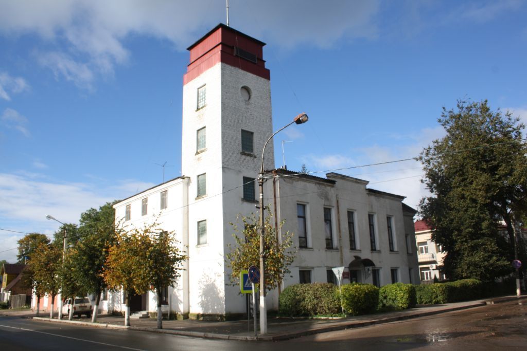 1. Местоположение здания на перекрестке ул. Свободы и ул. Мира; 2. Объемно-планировочная структура: двухэтажное здание с пятиуровневой башней-каланчей, Г-образное в плане, с гаражом на три машины и помещением «бомбоубежища» в подвале основного корпуса; габариты в плане; высотные габариты;3. Конструктивные особенности: - основное здание: монолитный железобетонный каркас с ригелями в двух направлениях; материал фундамента – монолитный железобетон; материал цоколя – монолитный железобетон, оштукатурен; материал самонесущих стен – силикатный кирпич, штукатурка, побелка; перекрытия- монолитные железобетонные; лестницы – монолитные железобетонные марши и площадки, накладные ступени; форма крыши – вальмовая, конструкция крыши – наслонные деревянные стропила; материал кровли – волнистые асбестоцементные листы;- башня (каланча): материал несущих стен – силикатный и глиняный кирпич, штукатурка и побелка (три нижних уровня); лестницы – деревянные по тетивам; форма крыши - четырехскатная над каркасной деревянной надстройкой в пол-этажа; - гараж: материал стен – кирпич, штукатурка и побелка; форма крыши – двускатная, конструкция крыши – наслонные деревянные стропила;4. Расположение и габариты оконных и дверных проемов; расположение и габариты ворот; 5. Декоративные особенности: венчающий ступенчатый кирпичный карниз основного здания; невысокий аттик с карнизом на оси главного входа; подоконники простого профиля под всеми оконными проемами (за исключением круглого окна на башне); небольшой профилированный карниз над главным входом; прямой кирпичный сандрик со ступенчатыми кронштейнами над входом в башню; заглубление в ¼ кирпича оконных и дверных проемов главного фасада; круглый оконный проем на пятом уровне башни (каланчи).6. Интерьер: стрельчатое завершение проемов, ведущих на лестничную площадку первого этажа основного здания, со ступенчатыми консолями; металлические кованые с деревянными точеными поручнями ограждения лестницы основного здания.