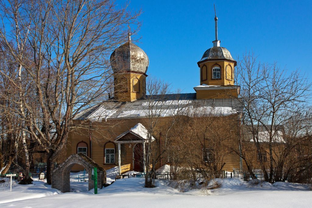 Объёмно-планировочная композиция храма, состоящая из следующих частей: прямоугольный в плане повышенный пятистенный сруб, перекрытый двухскатной крышей; примыкающая к нему с востока пятигранная апсида, перекрытая пятискатной вальмовой крышей; двухярусная колокольня типа «восьмерик на четверике», расположенная над западной частью храма и опирающаяся на перекрытие; глухой декоративный восьмигранный барабан, расположенный над восточной частью храма и опирающийся на перекрытие;крыльца при северных и южных вратах, с двухскатными козырьками на резных деревянных стойках; невысокий тамбур-паперть, примыкающий к западной стене храма и перекрытый двухскатной крышей;стены храма и апсиды, сложенные из полубруса «в лапу», обшитые изнутри и снаружи профилированной доской;элементы декора: наличники килевидной формы из профилированной доски, обрамляющие оконные и дверные проёмы, в том числе ложные; профилированные дощатые венчающие карнизы; резные деревянные колонки северного и южного крылец; точёные деревянные балясины и профилированный деревянный поручень ограждения хоров и лестницы, ведущей на колокольню и хоры;перекрытия храма и апсиды (плоские, по деревянным балкам, подшиты снизу досками);форма и пропорции покрытия над колокольней (восьмигранный шлемовидный купол, завершённый шпилем на восьмигранном постаменте) и над барабаном (восьмигранный купол в форме архиерейской митры);материал фундаментов – валунная кладка с включениями полнотелого кирпича;полы храма и в апсиде – дощатые по деревянным балкам, вентилируемые через продухи в цоколе;габариты и пропорции всех оконных и дверных проёмов в наружных и внутренней стенах, в том числе овальных и арочных проёмов во внутренней стене;местоположение (в юго-восточном углу храма), форма и пропорции ступеней лестницы, ведущей на колокольню и хоры;двери храма (деревянные; наружные двери – на кованых подставах и жиковинах, обиты снаружи железом; внутренние двери – филёнчатые);кованые оконные решётки и ограждения солеи.
