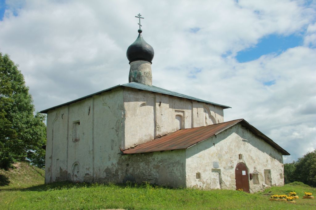 Объёмно-планировочная композиция храма, включающая двухстолпный четверик, три полукруглых апсиды, примыкающие к четверику, притвор, примыкающий к западной стене четверика на всю его ширину, перекрытый двухскатной крышей;композиция и архитектурно-художественное оформление фасадов, включая: местоположение и габариты ниш, киотов, оконных и дверных проёмов во всех частях памятника, в том числе заложенных ранее, декоративные и функциональные элементы обрамления оконных и дверных проёмов, ставенные и дверные ниши, пазы для засовов, растёсы внутренних углов проёмов; традиционный псковский орнамент на всех апсидах - два пояса «поребрика» между которыми пояс «бегунца», валиковые разводы на центральной апсиде, лопатки и «позакомарные» арочки на фасадах четверика, перспективный портал западных врат четверика, профилированные наличники по внутренним граням оконных и дверных проёмов в четверике, валиковый «архивольт» над северными вратами из четверика; пята утраченной кирпичной арки, сохранившейся на западном фасаде притвора севернее входной двери;пространственно-планировочная структура и элементы архитектурного оформления интерьеров здания церкви, включая пропорции и пространственные характеристики, отметки пят и шелыг, высоту подъёма, алтарных конх, арок, сводов, распалубок в четверике, апсидах и притворе;материал наружных и внутренних стен и столбов: кладка из известняковых плит на известково-песчано-цемяночном растворе; голосники, вмурованные в стены храма; кованые подставы дверей и оконных ставней.