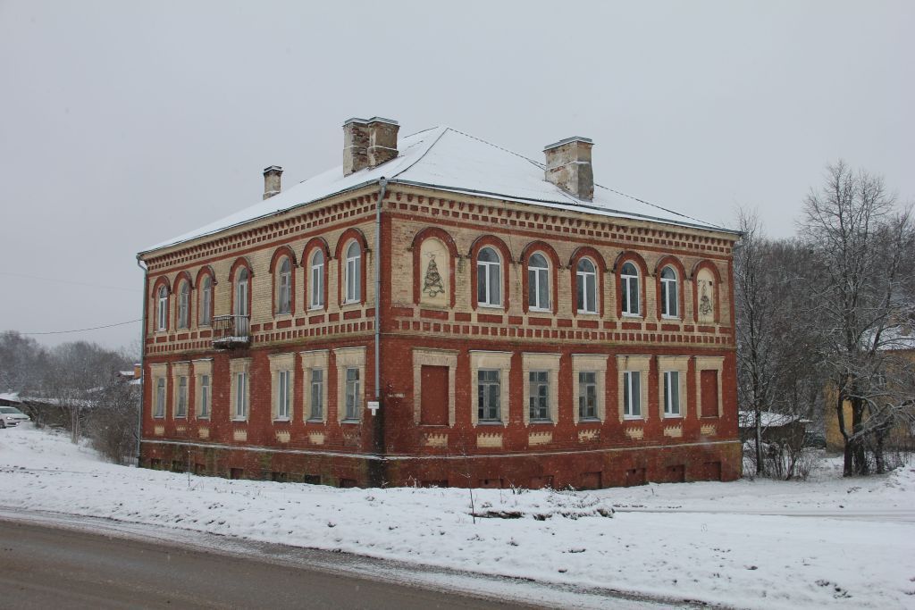 Объемно-пространственная и планировочная композиция дома в габаритах несущих и капитальных стен;композиция и архитектурно-художественное оформление фасадов: симметрично-осевая композиция в архитектурном решении неоштукатуренных кирпичных фасадов, форма оштукатуренных печных труб, четырехскатная форма крыши, габариты, форма, оконных и дверных проемов, арочная форма оконных перемычек 2-го этажа, кирпичный декор, рисунок расстекловки оконных заполнений и дверного балконного заполнения;конструктивная основа здания: фундаменты, несущие и капитальные стены;материал фундаментов, стен – кирпич.
