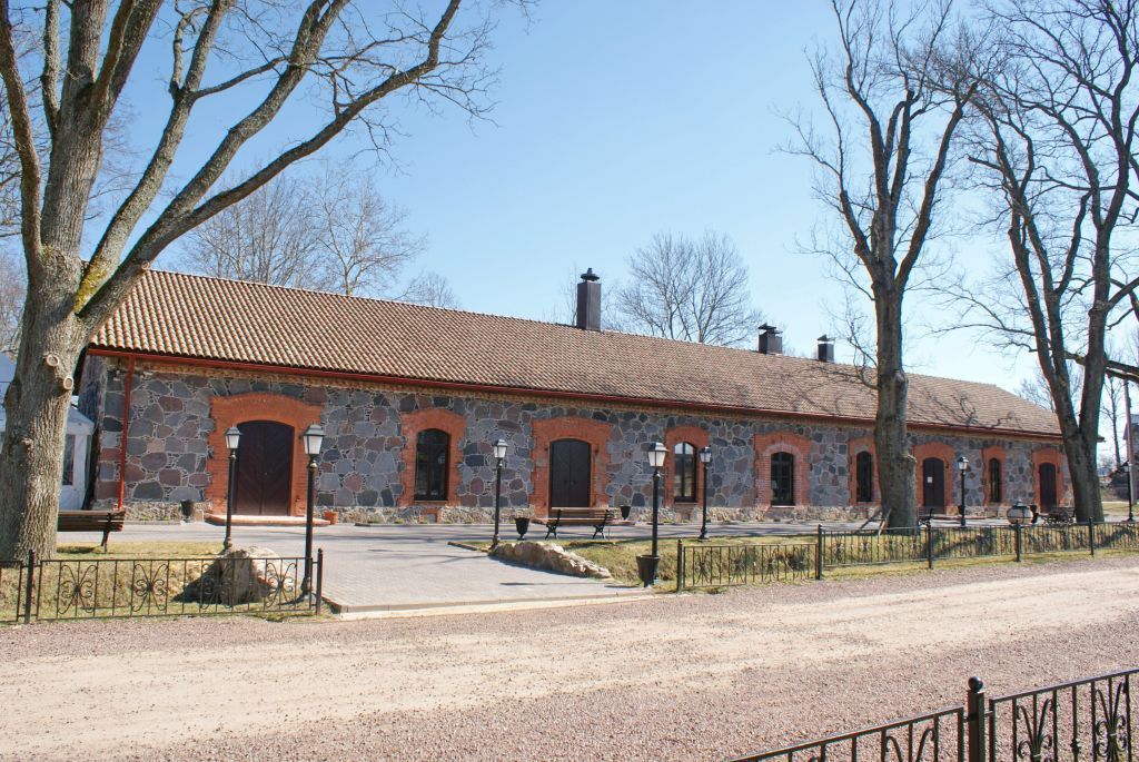 Корпус винокуренного завода:Местоположение здания на территории усадьбы;объемно-пространственная композиция одноэтажного, трехчастного, прямоугольного в плане, с устройством контрфорсов по торцам здания, в габаритах несущих и капитальных стен;двускатная форма кровли; архитектурная композиция фасадов: габариты, местоположение, ритм, форма оконных проемов, габариты и местоположение дверных (воротных) проемов;декор фасадов: сочетание валунной кладки стен с красно-кирпичным декором, карниз с зубчатым орнаментом, широкие фигурные наличники, повторяющие лучковую форму оконных и дверных (воротных) проемов, фигурные сандрики, выполненная из кирпича дата постройки здания над крайним левым входом;интерьеры здания: рассветы оконных и дверных (воротных) проемов, коробовые своды, в крайнем левом помещении двойной коробовый свод с устройством центрального столба и арками;материал стен: околотые гранитные валуны, красный кирпич;кованые оконные и дверные подставы, кольца.
