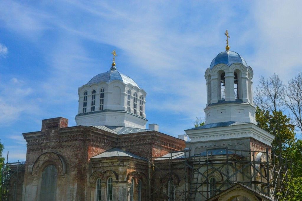 Объёмно-планировочная композиция храма, состоящая из следующих частей: крестообразный в плане основной объём; световой восьмерик - четверик со скошенными углами, с тремя окнами в каждой из граней, воздвигнутый над средокрестием храма; главная центральная апсида, полукруглая в плане внутри и раскрепованная тремя ризалитами снаружи, примыкающая к восточному выступу основного крестообразного объёма храма; квадратные в плане палатки-компартименты, встроенные во внутренние углы основного крестообразного объёма и имеющие пониженную высоту относительно основного объёма храма; северо-восточная и юго-восточная палатки, являющиеся апсидами северного и южного приделов; небольшой по размерам прямоугольный в плане, вытянутый по оси север-юг, притвор, имеющий пониженную высоту относительно основного объёма храма; трёхъярусная колокольня типа «восьмерик на четверике», примыкающая с запада к притвору; нижний ярус колокольни, приспособленный под тамбур; торой ярус, имеющий увеличенную высоту, с конструктивным переходом от четверика к восьмерику, выполненным в его объёме; третий ярус открытый ярус звонов; два прямоугольных в плане ризалита, примыкающих к колокольне с северной и с южной сторон, с расположенной в северном ризалите деревянной лестницей всхода на второй ярус;кирпично-штукатурный декор, включающий в себя следующие элементы: архитектурное обрамление оконных проёмов, состоящее из полуциркульных «зубчатых» арок, опирающихся на лопатки; входные порталы - полуциркульная арка с оригинальным зубчатым декором, опирающаяся на мощные лопатки; кирпичные перегородчатые венчающие и межъярусные карнизы; трёхъярусный кирпичный перегородчатый карниз, проходящий ниже окон первого этажа по всем фасадам храма; арочные кокошники над каждым из проёмов восьмерика и третьего яруса колокольни; штукатурные карнизы в интерьерах храма;стены храма кладка из полнотелого кирпича на известково-песчаном растворе;перекрытия во всех частях храма – кирпичные сомкнутые и коробовые своды с распалубками, опирающиеся на столбы и подпружные арки; кирпичная конха над апсидой;паруса, поддерживающие углы восьмерика храма;пирамидально - тромповая система перехода от четверика к восьмерику в пределах второго яруса колокольни; материал и характер наружной и внутренней отделки – штукатурка стен известково-песчаным раствором, с добавлением древесного угля в штукатурный состав для лепного декора; габариты и пропорции всех ниш, оконных и дверных проёмов, а также всех арочных проёмов в храме и в колокольне;местоположение маршевой лестницы, ведущей на второй ярус колокольни, материал лестницы – дерево;облицовка цоколя пилёными каменными блоками из песчаника; местоположение, габариты всех крылец храма, материал ступеней пилёные каменные блоки из песчаника;тип полов в основных помещениях храма – деревянные по балкам, вентилируемые через продухи в наружных стенах;внутристенные дымовые и вентиляционные каналы;двупольные филёнчатые двери с наддверными фрамугами, их рисунок и материал – дерево.