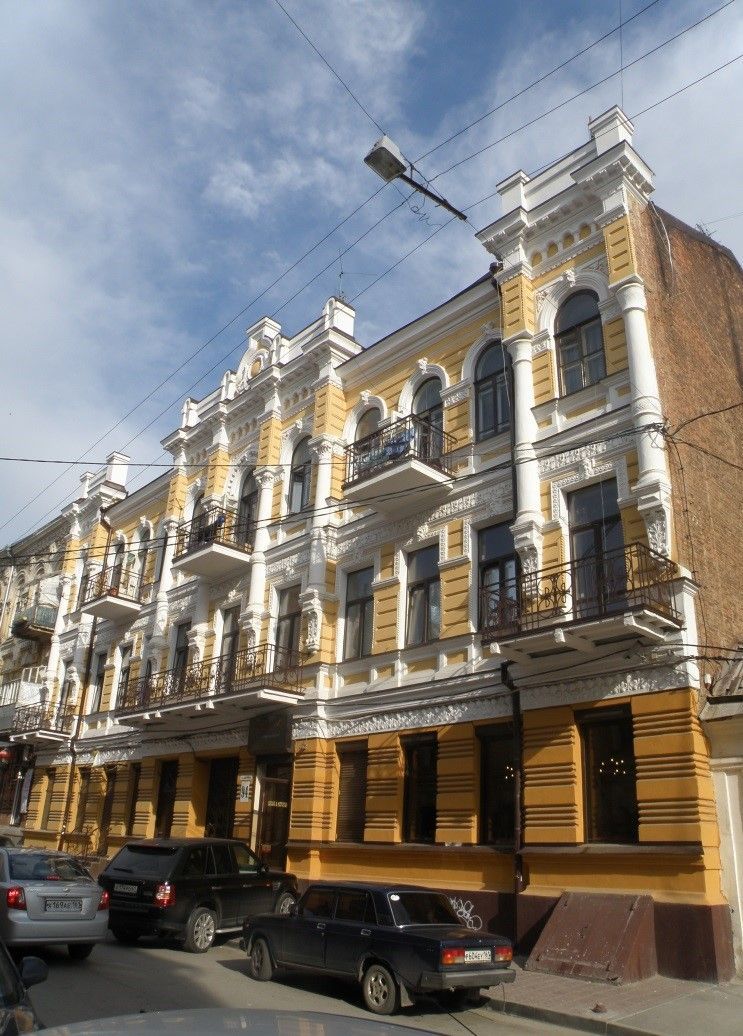 Предметом охраны объекта культурного наследия регионального значения \"Доходный дом И.А. Риттенберга\" являются:1. Местоположение объекта культурного наследия в системе застройки ул. Шаумяна;2. Композиционная значимость объекта культурного наследия, являющегося градоформирующим элементом застройки ул. Шаумяна, г. Ростова-на-Дону;3. Конструкции и объемно-пространственная композиция объекта культурного наследия кирпичного, сложной конфигурации в плане, трехэтажного с подвалом, небольшим внутренним двором и многоскатной крышей;4. Масштаб, композиционное построение, пластика, материал и характер отделки главного северного фасада объекта культурного наследия;5. Архитектурно-художественный облик главного северного фасада, включая: центральную и две крайних раскреповки фасада, завершенные аттиками; декоративные портики центральной и боковых раскреповок фасада; трехчастный аттик центральной раскреповки, оформленный в центральной части медальоном в обрамлении лепного декора, с эдикулами и архивольтом; антаблементы раскреповок, представленные венчающим карнизом с рядом изящных модульонов, аркатурой фриза и рельефными поясами мелких сухариков; колонны композитного ордера в оформлении раскреповок фасада; декоративные кронштейны колонн, оформленные декоративными вставками в форме аканта и квадров; декоративные вставки растительного орнамента в оформлении антревольтов арочных проемов центральной и боковых раскреповок; архивольты с маскаронами в замках и растительным орнаментом в тимпанах; лепной декор в оформлении оконных проемов третьего этажа раскреповок; подоконную профилированную тягу и ритм подоконных филенок второго и третьего этажей; междуэтажные тяги, подчеркнутые рельефными поясками растительного орнамента; сандрики оконных проемов второго этажа, оформленные рельефными поясками меандра и маскаронами; металлические решетки ограждения балконов 2-го и 3-го этажей; руст стен в уровне второго – третьего этажей; декоративные муфты и валики в оформлении руста первого этажа; подоконные тяги первого этажа; фрамугу двери парадного входа (первоначальные полотна двери в настоящее время утрачены); кордон цоколя; кованые металлические двупольные, ажурного рисунка, створки ворот с калиткой внутридворового проезда;6. Архитектурный декор Внутренняя междуэтажная парадная лестница, ее конструкция, материал изготовления, характер наружной отделки и местоположение в центральной части объекта культурного наследия в вестибюле парадного входа, включая: плафон потолка, оформленный изящным растительным и геометрическим орнаментом; профилированные тяги потолка; фриз стен, включающий профилированные тяги и небольшие модульоны, оформленные завитками волют и лаконичным растительным орнаментом; сложносоставные пилястры стен, выполненные в сочетании с филенками и декоративными накладками; рельефные пояски иоников с завитками волют в оформлении капителей пилястр; профилированный кордон и глубокий руст нижнего яруса стен;7. Внутренняя междуэтажная парадная лестница, ее конструкция, материал изготовления, характер наружной отделки и местоположение в центральной части объекта культурного наследия.