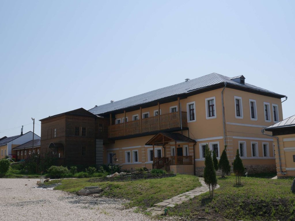 градостроительная характеристика здания, фиксирующего южную границу ансамбля монастыря;объемно-пространственная композиция двухэтажного, протяженного, близкого к прямоугольному в плане здания с примыкающей северо-западной двухэтажной пристройкой; вальмовая форма основного объема и двускатная пристройки, габариты, угол наклона скатов и высотные отметки по конькам крыш; местоположение, габариты, конфигурация и оформление дверных и оконных проемов здания: осевое расположение, прямоугольная форма проемов;композиция и архитектурно-художественное оформление фасадов: линия цоколя; промежуточный карниз деревянной пристройки; венчающие карнизы; рамочные наличники; подоконная тяга, надоконный пояс, рустованные лопатки правой части первого этажа; конструкции капитальных фундаментов; кирпичных стен; перекрытий;материал и техника кладки капитальных стен: красный кирпич; материал кровли: листовой металл; характер обработки фасадной поверхности здания: оштукатуренные поверхности наружных стен.Предмет охраны может быть дополнен в процессе проведения научно-исследовательских работ в рамках сохранения объекта культурного наследия.