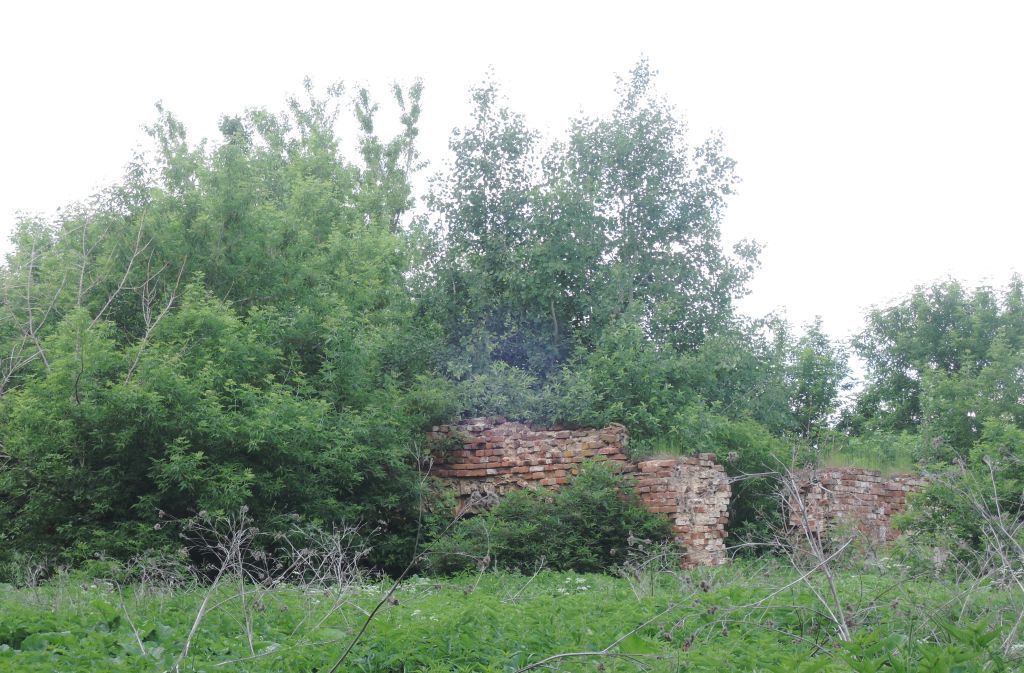 Градостроительная характеристика сооружения, расположенного на территории усадьбы, возле дороги, к северу от особняка;объемно-пространственная композиция прямоугольного (с небольшим выступающим объемом на северном фасаде) в плане сооружения, вытянутого по длине в направлении запад-восток; конфигурация и габариты скатной крыши; высотные отметки по коньку крыши; местоположение, габариты, конфигурация и оформление дверных и оконных проемов здания: трое широких ворот, перекрытых лучковой перемычкой, расположенных на южном фасаде; оконные прямоугольные проемы (в уровне первого этажа) южного фасада, два сближенных арочных окна, прорезающих плоскость узкого ризалита в уровне второго света; композиция и архитектурно-художественное оформление фасадов включая: четыре разновеликих ризалита (один узкий, в два света проемов; три других – одинаковые, более широкие) разбивающих плоскость южного фасада на несколько частей; каждый из ризалитов решён в одну ось, завершен аттиком; кар¬низ, дополненный дентикулами, завершающий стены и аттики; вертикальные ниши, декорирующие узкий ризалит; материал капитальных стен: красный глиняный кирпич; материал кровли: железо; характер обработки фасадной поверхности здания: открытая кирпичная кладка.
