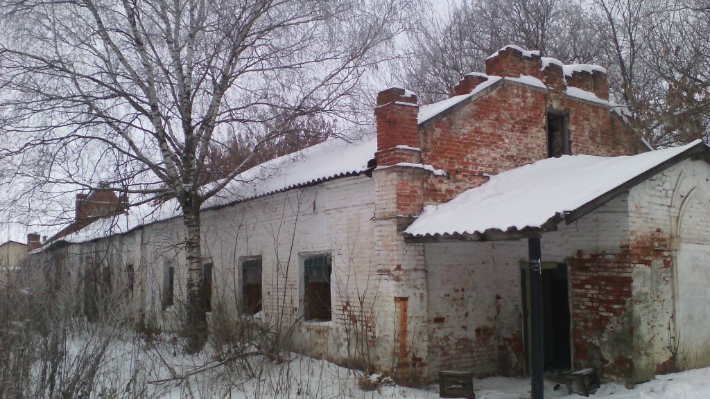 Жилой дом – 1857 г.градостроительная характеристика здания, расположенного в восточной части комплекса, справа от главного въезда; объемно-пространственная композиция прямоугольного, сильно вытянутого в продольном направлении объема, с небольшой пристройкой в правом торце; двускатная крыша, габариты и высотные отметки по коньку крыши и по верхней точке фронтонов; композиция и архитектурно-художественное оформление фасадов, где западный торец разделен четырьмя примыкающими контрфорсами (завершения контрфорсов – изящные башенки-пинакли) на три чётко выделенные грани: центральное поле (более высокое с треугольным фронтоном) декорировано дверным проемом и расположенным над ним слепым стрельчатым окном; боковые простенки, завершенные аркбутанами, оформлены слепыми стрельчатыми окнами; продольные фасады расчленены рустованными контрфорсами; местоположение, габариты, конфигурация и оформление дверных и оконных проемов здания: прямоугольные с веерными перемычками оконные проемы боковых фасадов; килевидные сандрики; дверные проемы восточной пристройки, вписанные в стрельчатые порталы, выполненные в виде двух дуг архивольтов различного радиуса с выпуклым прямоугольным профилем, опирающихся на небольшие колонки того же сечения; слепые стрельчатые окна западного торцевого фасада, расположенные в два яруса: верхнее, разделенное на две высоких двойных ланцетных арки и небольшую розетку, обрамлено наличником со стрельчатым завершением, выложенным в технике белокаменной кружевной резьбы, покрытом тремя рядами ажурной каменной резьбы витиеватого цветочно-геометрического орнамента; два нижних окна - с пересекающимися белокаменными выкладками; ложный стрельчатый дверной проем с флероном в завершении вписан в такой же формы белокаменный мелкопрофилированный наличник (все наличники по внешней линии верхней части украшены краббами);конструкции капитальных фундаментов (из красного кирпича); перекрытий (плоские деревянные);материал и техника кладки капитальных стен: красный кирпич; характер обработки фасадной поверхности здания: открытая кирпичная кладка.