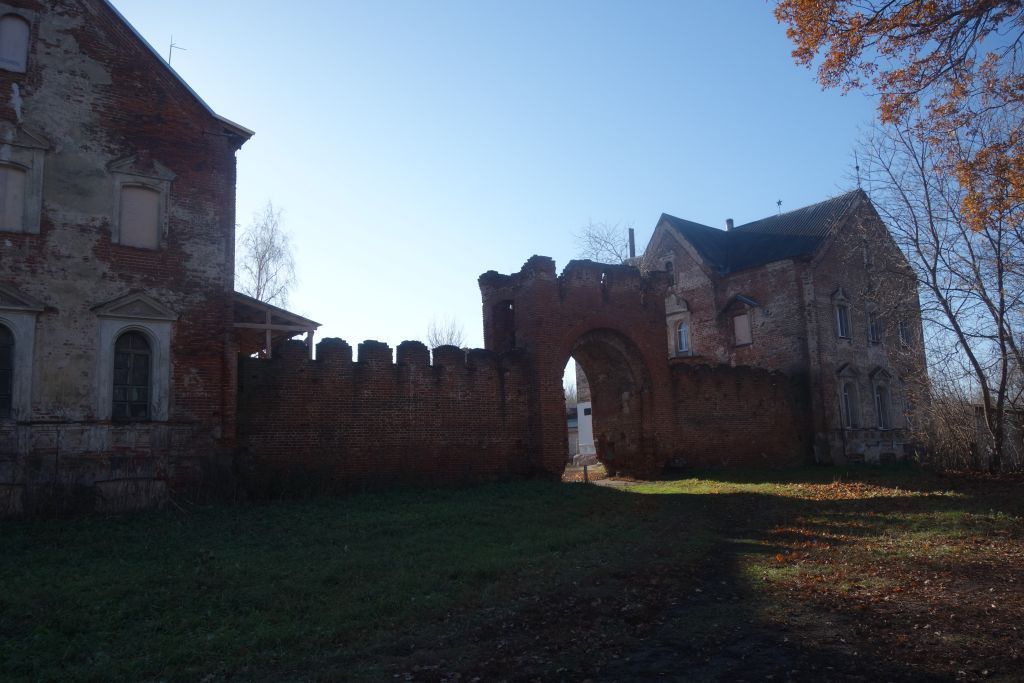 Предметом охраны объектов культурного наследия, входящих в Усадьбу Кикиных, XVIII-XIX вв. является:I. Комплекс усадьбы: 1. Композиционно-пространственные характеристики:1.1. Местоположение и градостроительные характеристики усадьбы, расположенной в восточной части села. 1.2. Пространственно-планировочная структура усадебного комплекса, разделенного в планировочном отношении на две основные части: - западную, с зелеными насаждениями в её северной части и комплексом «красного двора», приближенного к юго-западной части усадьбы, сформированным двумя парными двухэтажными зданиями (флигелями), и, соединяющими их и довершающими образование двора зубчатыми стенами, над которыми возвышаются высокая угловая башня (в юго-западном углу) и ворота (в северной части);- восточную, где устроен пейзажный парк.2. Объёмно-пространственные характеристики: 2.1. Силуэт усадебного комплекса (включая габариты, высотные и силуэтные характеристики зданий) и окружающей застройки, формирующие планировочную структуру села;2.2. Объёмно-пространственные характеристики территории комплекса – система открытых, полузакрытых, закрытых пространств территории (поляны, кусты, ценные насаждения, ряды, высокие деревья).3. Композиционно-пространственная структура усадебного комплекса: 3.1. Композиционные особенности комплекса, выраженные тектоническими особенностями и зрительным восприятием: мощные объемы зданий, господствующие над окружающей застройкой, и соединяющая их стена образуют четкую симметричную композицию, а высокая угловая башня придает ансамблю вертикаль.3.1.1. Архитектурные характеристики (архитектурно-стилевые решения, основные строительные и отделочные материалы) объектов культурного наследия (памятников истории и культуры), входящих в состав усадебного комплекса:Дом, XVIII в. (восточный флигель).Градостроительная характеристика здания, расположенного на территории усадьбы, в его юго-западной части, в северо-восточном углу «красного двора»;объемно-пространственная композиция прямоугольного в плане, немного вытянутого в направлении север-юг, двухэтажного с подвалом сооружения, перекрытого многощипцовой кровлей над высокими щипцовыми фронтонами (щипцы на протяженных фасадах поднимаются над средними частями фасада, на торцевых – от полиц); габариты и высотные отметки по коньку крыши;местоположение, габариты, конфигурация и оформление дверных и оконных проемов здания: все оконные проемы заключены в прямоугольные кирпичные наличники; окна подвала и второго этажа с пологими лучковыми перемычками, первого этажа и два средних на втором – арочные; наличники окон первого этажа завершены треугольными фронтонами, в тимпанах - круглые розетки; наличники окон второго этажа опираются на подоконную тягу с консолями, увенчаны треугольными разорванными фронтонами. На торцевых фасадах наличники средних окон крупнее других. На протяженных фасадах два средних проема сближены и объединены между собой единым наличником с полукруглым разорванным фронтоном над ним, в центре поля наличника (между проемами, на уровне их завершений) помещены круглые штукатурные филенки. Щипцы прорезаны небольшими арочными окнами в наличниках, подобных большинству на втором этаже. композиция и архитектурно-художественное оформление фасадов: фасады симметричны и попарно од