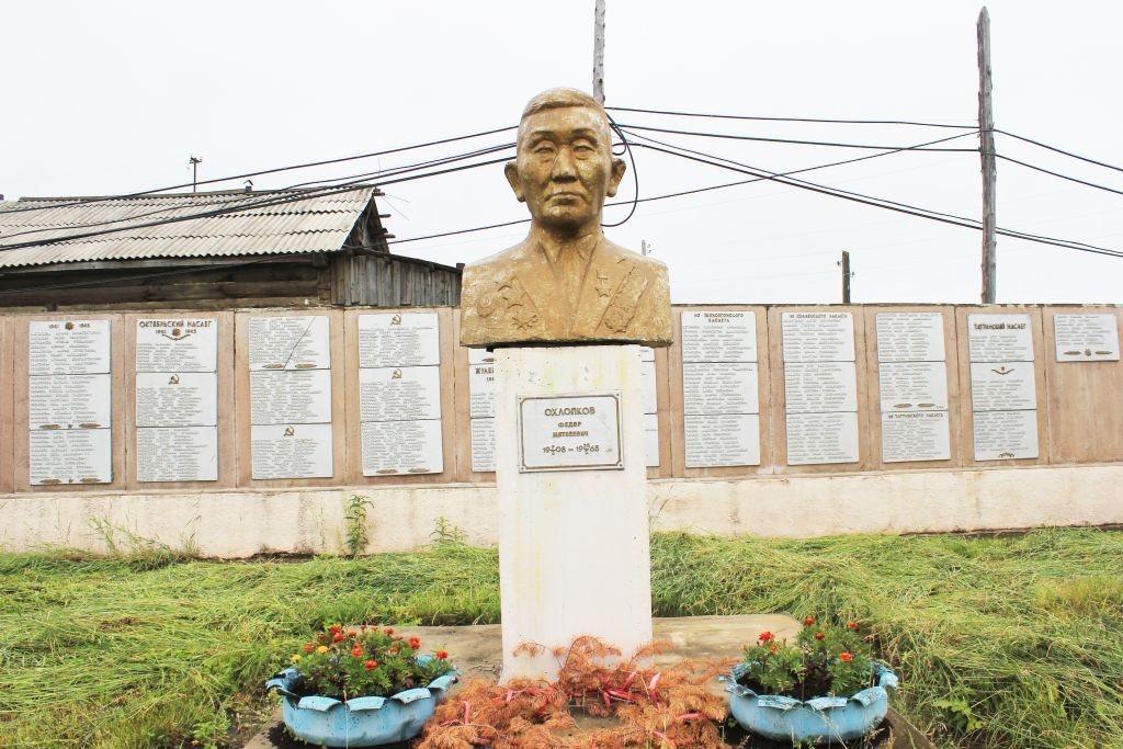 Памятник-бюст Охлопкову Федору Матвеевичу - Герою Советского Союза. Скульптор П.А. Захаров, железобетон, 1972 г.