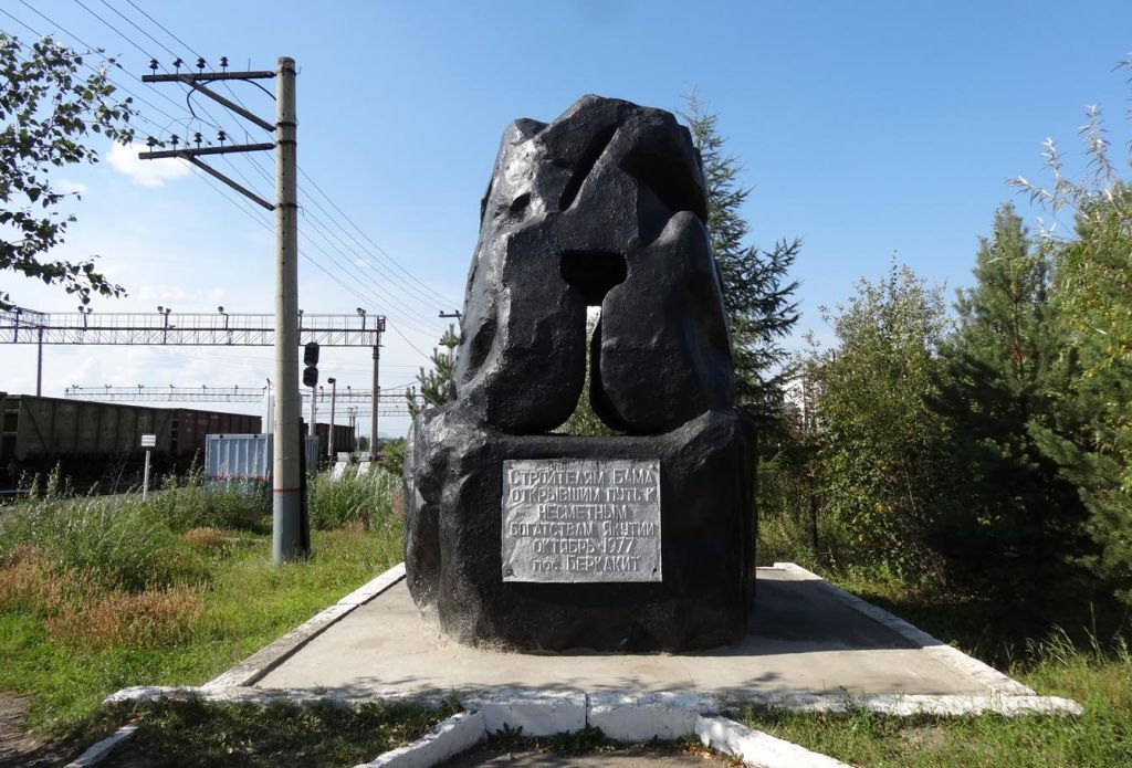 Памятник строителям БАМа, открывшим путь к несметным богатствам Якутии