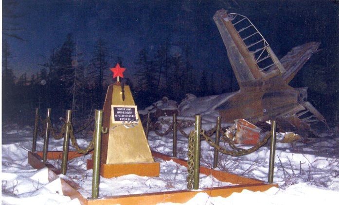 Мемориальная доска на месте гибели 6 июня 1943 г. экипажа самолета-бомбардировщика № 253721