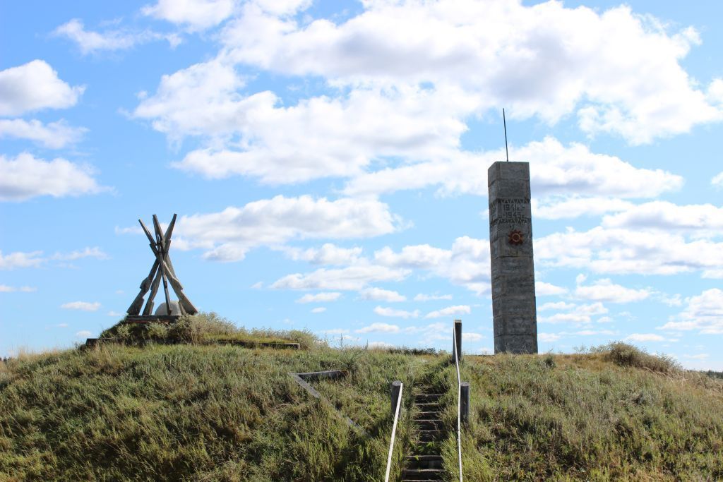 Памятник воинам-землякам, погибшим в годы Великой Отечественной войны (1941-1945 гг.). Арх. И. А. Слепцов, железобетон, 1965 г.