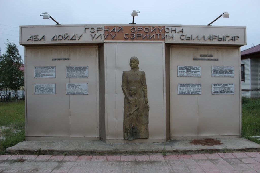 Предметом охраны объекта культурного наследия «Памятник-стела «Горный район в годы Великой Отечественной войны 1941-1945 гг.» являются:Местоположение и габариты памятника, участвующего в формировании пространственно-композиционного плана площади; -Вертикальный щит (стела) -Прямоугольная плита;-Барельеф, изображающий женщину и малолетнего мальчика;-8 дюралюминиевых табличек со сведениями о вкладе населения Горного района в Победу в Великой Отечественной войне и имена матерей-героинь;-Надпись «Горнай оройуона А5а дойду улуу сэриитин сылларыгар» («Горный район в годы Великой Отечественной войны»).