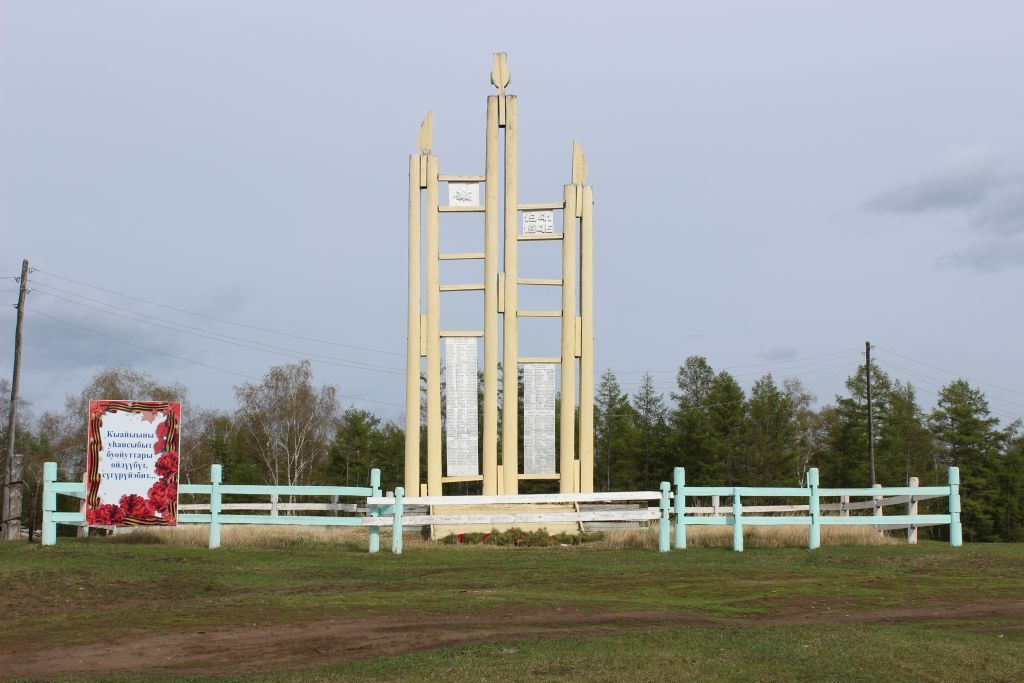 Предметом охраны объекта культурного наследия \"Памятник воинам, участникам Великой Отечественной войны, в честь 50-летия Великой Победы\" являются:Местоположение и габариты памятника, участвующего в формировании пространственно-композиционного плана площади; Обелиск из трех пилонов - деревянных столбов, соединенных между собой деревянными брусьями;Деревянные конструкции в форме чорона (сосуда для кумысопития) и двух пальм;Семь табличек из дюралюминия, с отлитыми на них именами 74 воинов вернувшихся домой с Победой;Пять табличек из дюралюминия, с отлитыми на них именами 63 воинов погибших на фронтах войны;Деревянный постамент памятника;Пятиступенчатая деревянная лестница;Деревянная изгородь памятника.