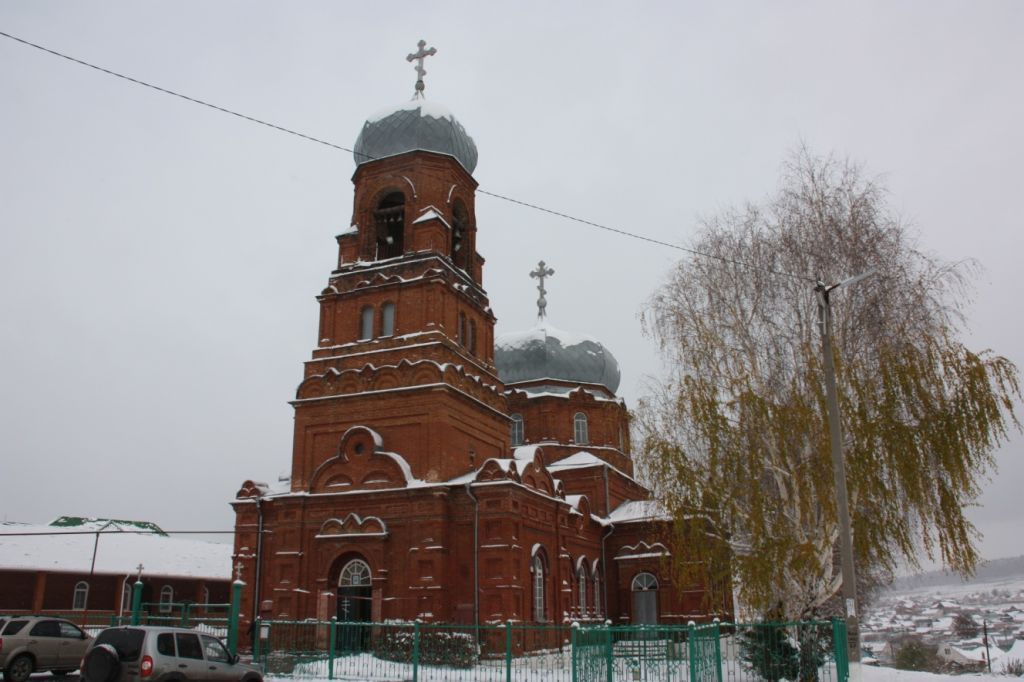 Объёмно-пространственная композиция объекта культурного наследия: - здание из красного кирпича на белокаменном цоколе. Планировочная структура решена в виде равноконечного креста, - три пятигранные апсиды, центральная – большего размера, храм, трапезная и четырехъярусная колокольня с боковыми ризалитами на продольной оси (восток-запад), - габариты в плане и по высоте (включая высотные отметки крыш, шатров, главок и крестов) здания.Строительные конструкции здания:- бутовые ленточные фундаменты,- наружные и внутренние капитальные стены.Композиционное построение и декор фасадов:- архитектурное решение выполнено в стиле кирпичной эклектики,- входные порталы с квадратными полуколоннами и килевидным сандриком над дверными проемами с арочным завершением,- наличники на оконных проемах в виде порталов с круглыми полуколоннами из лекального кирпича, ниши, сухарики,- аттиковые стенки в виде глухих люкарн на северном и южном фасадах; наполовину выходят на профилированный карниз,- ниша с мозаичной иконой в восточной стене алтаря,- полукруглые световые фрамуги над прямоугольными проемами,- угловые пилястры в ризалитах.