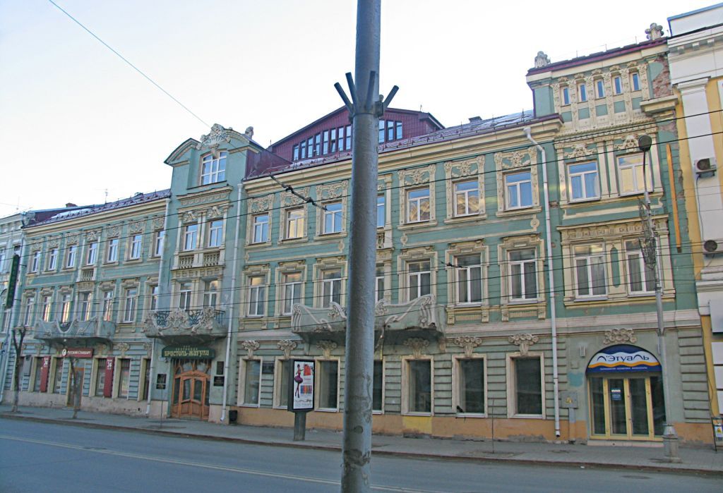 Объёмно-пространственная композиция объекта культурного наследия: трехэтажное с подвальным этажом кирпичное Т-образной формы в плане здание, ризалит главного фасада; конфигурация, габариты в плане и по высоте (включая высотные отметки крыши) зданий.Строительные конструкции здания: бутовые ленточные фундаменты, наружные и внутренние капитальные стены и колонны, надподвальные перекрытия кирпичные сводчатые с распалубками, своды «Монье», межэтажные перекрытия плоские по деревянным балкам; парадная двухмаршевая металлическая лестница, бетонная лестница.Композиционное построение и декор фасадов: архитектурно-художественное решение главного фасада в стиле модерн; количество, осевое расположение и конфигурация оконных и дверных проёмов по фасадам; исторический вид материала и рисунок дверных и оконных заполнений; главный фасад по ул. Куйбышева четырёхчастной18-осевой фронтальной композиции; декоративный руст, оформление оконных и дверных проёмов наличниками; декоративное оформление ризалита с раскрепованным лучковым фронтоном; аттиковая стенка; дверной проем парадного входа с двупольным дверным полотном; барельефные вставки со стилизованным растительным орнаментом, маскароны; балконы второго этажа с ограждением (3 шт.); межэтажный карниз, профилированные фигурные рамы над окнами второго этажа, венчающий карниз.Декоративно-художественная отделка интерьеров здания: декоративное оформление вестибюля первого этажа, включая спаренные круглые колонны на пьедесталах, арки, подкарнизный фриз, оформленный лепным растительным орнаментом, пилястры; оформление потока овальным плафоном с профилированными тягами и лепным растительным орнаментом, центрической розеткой. Декоративное оформление объёма парадной лестницы: первоначальная лестница чугунного литья с фигурным металлическим ограждением, круглая ниша с барельефным изображением. Декоративное оформление холла второго этажа: потолочная розетка с профилированными тягами и порезками; оформление стен картинами из тянутых профилей. Декоративное оформление потолков и стен в стиле модерн гостиничного номера второго этажа «Люкс Шаляпин»: плафоны, розетки, профилированные тяги, лепные венки, цветы. Декоративное оформление холла третьего этажа: потолок с тремя геометрическими розетками, профилированные тяги по периметру потолка и по стенам. Декоративное оформление бывшего обеденного зала ресторана Н.Н.Шемякина: две круглые колонны с базами и капителями, увитые лепными цветами, оформление потолка: прямоугольный плафон с круглой центральной розеткой, выделенной рядами концентрических профилированных тяг с порезками, по углам лепные элементы растительного орнамента; овальный плафон с выделенной профилированными тягами центральной квадратной розеткой и двумя боковыми полукружьями, лепные карнизы из рядов профилированных тяг с рядами порезок. Предметы прикладного искусства: зеркала в массивных деревянных рамах в силе «модерн» в вестибюле и холлах первого и второго этажей; зеркало в деревянной резной раме (венецианское стекло) (межэтажная площадка парадной лестницы).