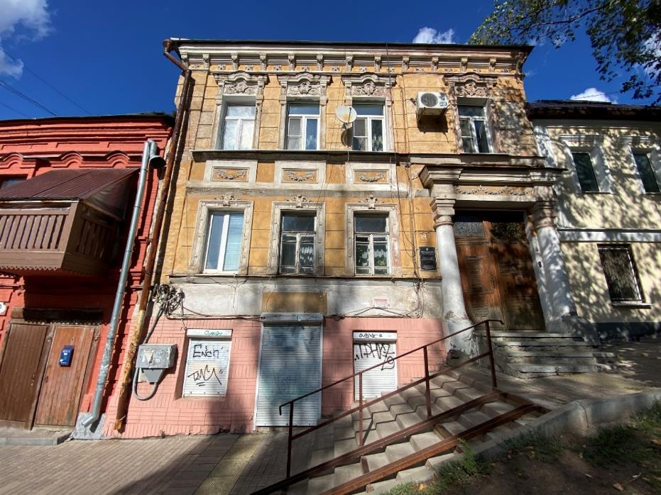 Объёмно-пространственная композиция объекта культурного наследия: - здание двухэтажное (трехэтажное в связи с перепадом рельефа), с подвалом, кирпичное, Г-образное в плане, - конфигурация, габариты в плане и по высоте (включая высотные отметки крыши) здания.Строительные конструкции здания:- фундамент,- наружные и внутренние капитальные стены. Композиционное построение и архитектурное оформление главных фасадов:- внешний архитектурный облик здания решен в стиле неоренессанса,- характер фасадной поверхности – стены выполнены из красного керамического кирпича, оштукатурены, окрашены. Поле стены с дощатым рустом,- количество, осевое расположение, конфигурация и заполнения оконных проемов:в уровне первого этажа - проемы прямоугольные, с наличниками, с картушем на месте замкового камня,в уровне второго этажа - проемы прямоугольные, с профилированными наличниками, прямым сандриком с полуциркульной бровкой, подоконными нишами с лепным декором в виде гирлянд, в лепном декоре в виде стеблей растений на сандрике – картуш со вписанной в овал буквой «С», заполнения оконных проемов двухстворчатые с фрамугой,- дверной проем парадного входа - портал с ионическими колоннами и прямым антаблементом с лепным декором в виде гирлянд,- пилястры на углах здания рустованные,- междуэтажный карнизный пояс профилированный,- фриз с лепниной в виде стилизованных листьев,- венчающий карнизный пояс с сухариками.