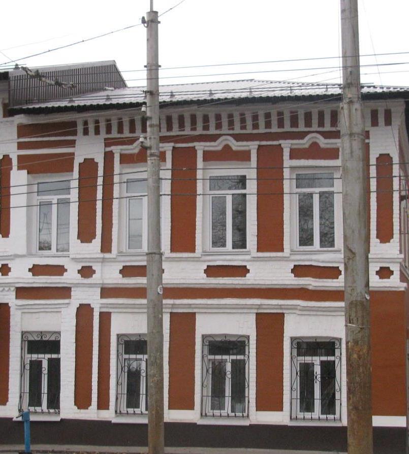Первоначальный внешний архитектурный облик здания, включая:- объемно-планировочную композицию: кирпичное, двухэтажное, прямоугольное в плане здание;- композиционное построение и декоративное оформление главного фасада: архитектурно-художественное решение главного фасада здания в стиле кирпичной эклектики; количество, осевое расположение и конфигурация оконных и дверных проёмов по фасаду;декоративное оформление главного фасада, включая пилястру, оформленную нишами-ширинками; подоконный фриз второго этажа с нишами-ширинками сложной формы; наличники оконных проемов с сандриками; подоконный фриз с прямоугольными нишами-ширинками; междуэтажный карниз, венчающий карниз с кирпичными фигурными кронштейнами