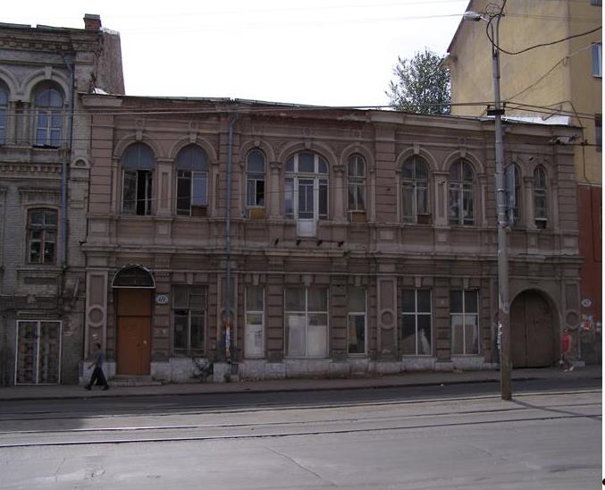 Композиционное построение и декор главного фасада:- внешний архитектурный облик здания решен в стиле эклектики с чертами классицизма и модерна,- характер фасадной поверхности - поверхность фасада в уровне первого этажа оштукатурена под руст; - количество, осевое расположение, конфигурация оконных проемов:в уровне первого этажа – проемы прямоугольной формы, с замковыми камнями,в уровне второго этажа – проемы с полуциркульной перемычкой, полуколоннами со стилизованными ионическими капителями, служащими основанием для тянутого карнизного пояса; с прямоугольными пилястрами с нишами, поддерживающими архивольт,дверной проем балкона с перемычкой трёхцентровой формы,дверной проем парадного входа прямоугольной формы,первоначальный дверной проем по оси 4 (в уровне первого этажа),- арочный проем с полуциркульной перемычкой, с узким тянутым карнизным пояском,- пилястры на высоту двух этажей – в уровне первого этажа с рамочным декором с круглой розеткой из формообразующего раствора в центре; в уровне второго этажа – с дощатым рустом,- лепной декор с элементами растительного характера, с круглым венком с ленточкой в пространстве между сводами арочных проёмов и фризом венчающего карниза,- венчающий карниз с рядом сухариков, прямоугольными филёнками, разорванными круглыми розетками.
