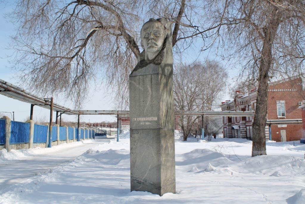 Произведение монументального искусства, посвященное исторической личности – Г.М.Кржижановскому. Материальная структура произведения монументального искусства: - постамент - три блока серого мелкозернистого гранита. Два нижних блока, высотой 1,64 м и 1,25 м; в сечении имеют форму, близкую к квадрату со сторонами 0,84 х 0,82 м. Третий, верхний блок включает в себя высокий барельеф головы и шеи Г.М. Кржижановского,- надписи – на лицевой стороне среднего блока выгравирована надпись «Г.М.Кржижановский 1872-1959 гг.», покрыта позолотой,- высота блока с барельефом 1,23 м. Тыльная отполированная грань является продолжением пьедестала; имеет рваное очертание, заниженное у правой стороны блока.