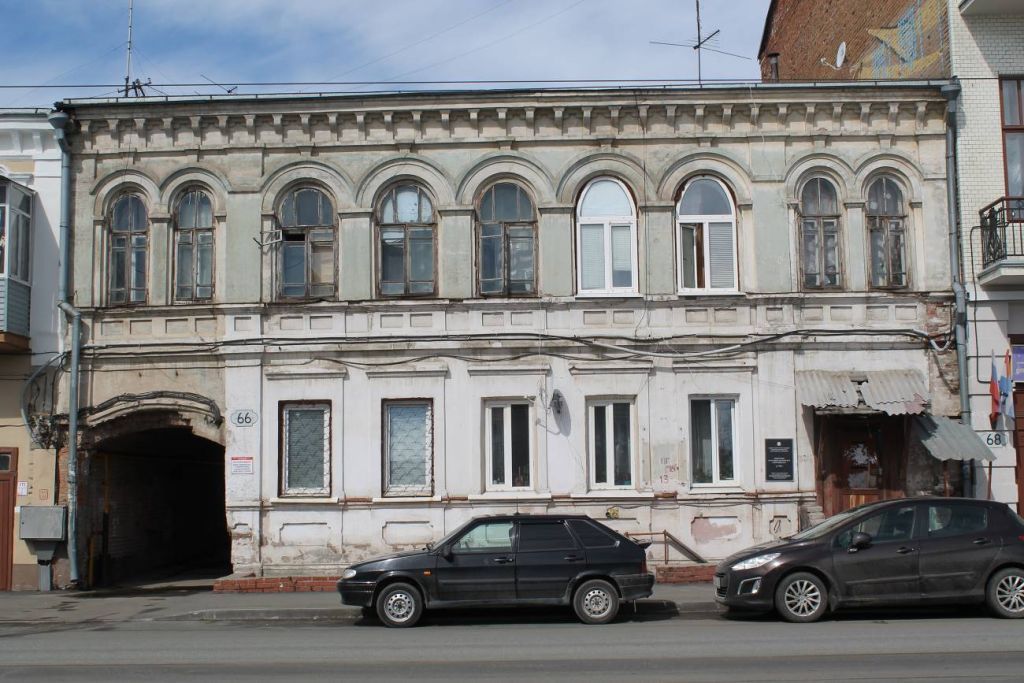 Объёмно-пространственная композиция объекта культурного наследия: - здание двухэтажное с подвалом, проездной аркой, прямоугольное в плане, - конфигурация, габариты в плане и по высоте (включая высотные отметки крыши) здания.Строительные конструкции здания:- фундамент,- наружные и внутренние капитальные стены.Композиционное построение и декор главного фасада:- внешний архитектурный облик здания решен в стиле поздний классицизм,- характер фасадной поверхности – стены из полнотелого глиняного кирпича. Стена главного фасада – оштукатурена, имеет двухколерную окраску с выделением архитектурных деталей белым цветом, - количество, осевое расположение, конфигурация оконных проемов:в уровне первого этажа – проемы прямоугольные, с наличником, прямым сандриком, в уровне второго этажа – проемы объединены в аркатурный ряд, с полуциркульным завершением, профилированными сандриками, замковыми камнями, наличниками в виде плоских пилястр с импостами,- поле подоконного парапета с фигурными ширинками,- проездная арка во двор с лучковой перемычкой,- пилястры плоские,- межэтажный карнизный пояс,- венчающий карниз выносной с кронштейнами.