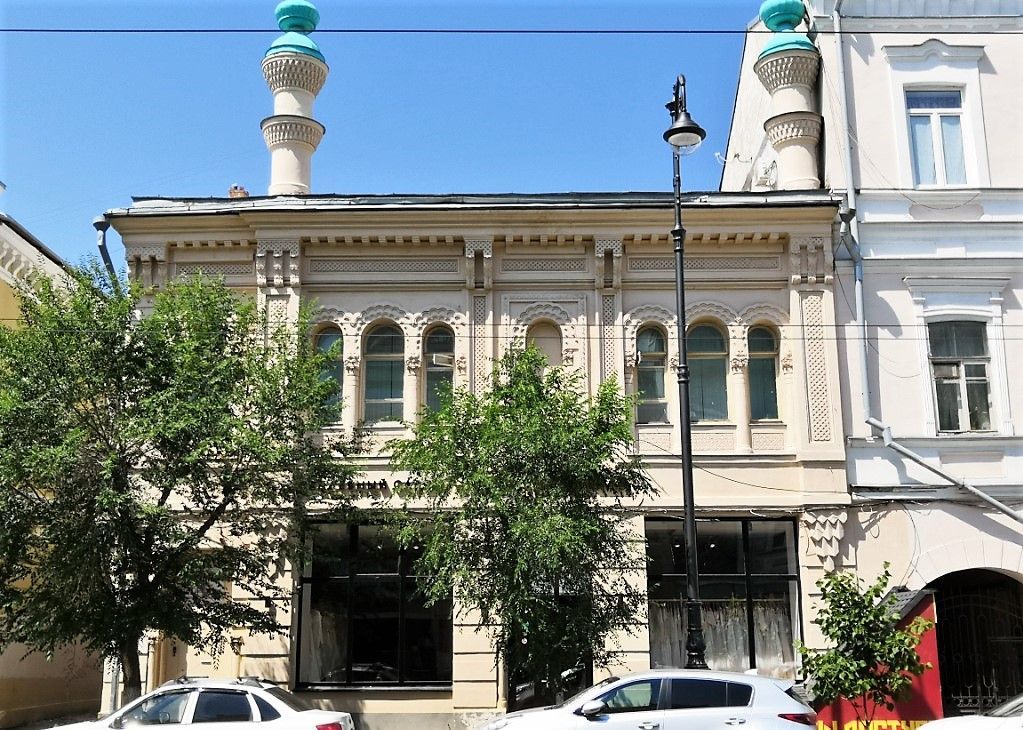 Объёмно-пространственная композиция объекта культурного наследия: - здание двухэтажное, с подвалом, прямоугольное в плане, с пристроями со стороны двора,- конфигурация, габариты в плане и по высоте (включая высотные отметки крыши) здания.Строительные конструкции здания:- фундамент,- наружные и внутренние капитальные стены.Композиционное построение и декор главного фасада:- внешний вид первоначального объема здания решен в «мавританском» стиле,- характер фасадной поверхности - стены выполнены из красного керамического кирпича, оштукатурены, окрашены. В левой части фасада в уровне второго этажа поле стены рустовано,- количество, осевое расположение, конфигурация и рисунок заполнения оконных проемов:в уровне первого этажа - широкие окна-витрины по бокам от дверного проема,в уровне второго этажа - проемы узкие с подковообразным арочным завершением, с «кружевными» наличниками и коринфскими полукруглыми пилястрами; в подоконных нишах - «восточный» орнамент,- дверной проем с небольшими колоннами (первоначальный проем стрельчатой формы),- пилястры - в уровне первого этажа рустованные со сталактитовыми декоративными деталями,- плоские пилястры в межоконных простенках второго этажа, с ширинками, геометрическим орнаментом из переплетающихся линий,- венчающий карнизный пояс профилированный, с узкими акантовыми кронштейнами и поясом сухариков,- две башенки в виде «минаретов»; башенки покрыты поясками мелких стрельчатых арочек; купола со шпилями.