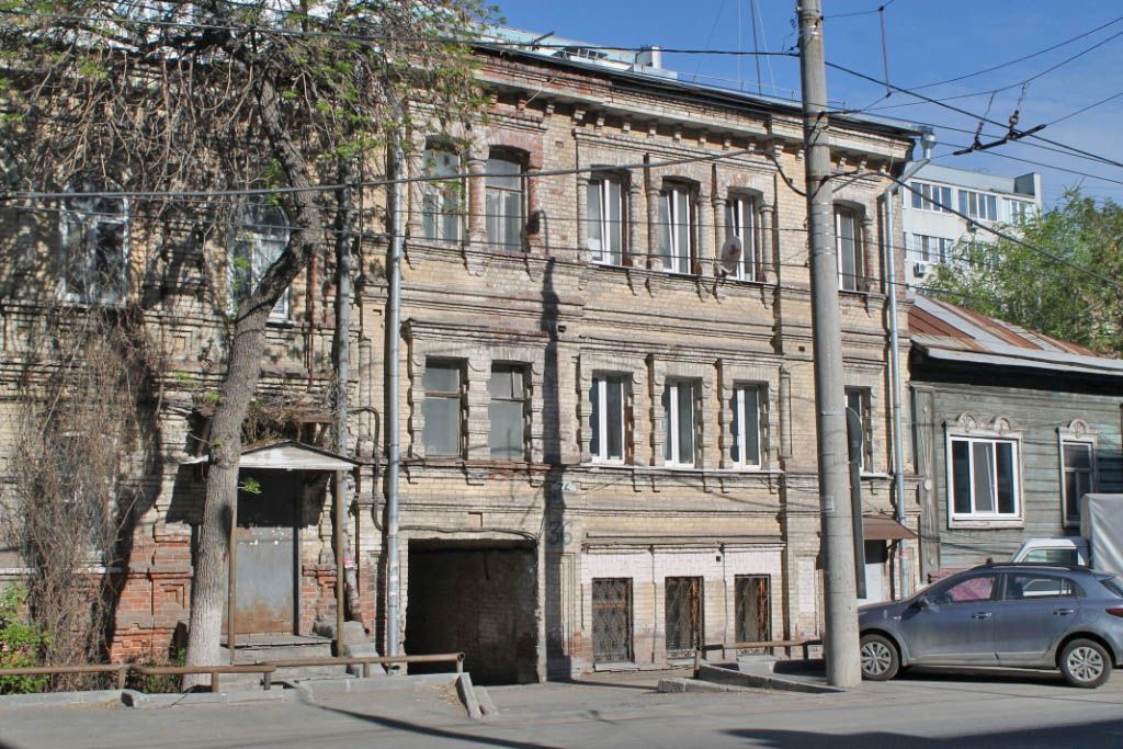 Объёмно-пространственная композиция объекта культурного наследия: - здание трехэтажное, с подвалом, кирпичное, прямоугольное в плане, с ризалитом, аркой проезда. Со стороны дворового фасада в уровне второго этажа - деревянная терраса на кирпичных столбах,- конфигурация, габариты в плане и по высоте (включая высотные отметки крыши) здания.Строительные конструкции здания:- фундамент,- наружные и внутренние капитальные стены. Композиционное построение и декор главного фасада:- внешний архитектурный облик здания решен в стиле эклектика с элементами неорусского стиля,- характер фасадной поверхности – стены выполнены из красного керамического кирпича, не оштукатурены, окраска двуколерная,- количество, осевое расположение, конфигурация оконных проемов:в уровне первого этажа – проемы с прямой клинчатой перемычкой, наличниками с прямым сандриком. Оконные заполнения двухстворчатые с фрамугой, в уровне второго этажа – проемы с лучковой перемычкой, наличниками с прямым профилированным сандриком, наборными пилястрами из фигурного кирпича и колоннами по углам,в уровне третьего этажа – проемы с прямой клинчатой перемычкой, наборными наличниками, полукруглыми пилястрами из фигурного кирпича,в уровне второго-третьего этажей в 1,2-й осях - окно-бифорий,- ниши по бокам дверного проема и арки проезда,- междуэтажные карнизные пояса,- венчающий карниз с кронштейнами из фигурного кирпича,- арка плоская.