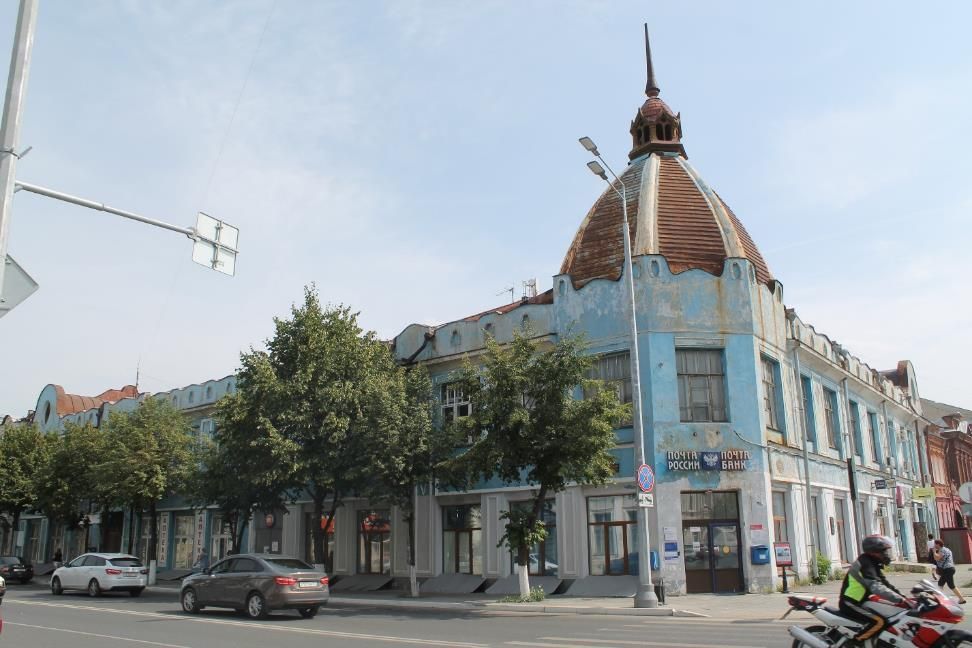 Объёмно-пространственная композиция объекта культурного наследия: - здание двухэтажное, с чердачным этажом, Г-образное в плане, со скошенным углом, куполом, аркой проезда,- чердачный этаж в виде ложной волнообразной балюстрады с круглыми окошками мансард,- конфигурация, габариты в плане и по высоте (включая высотные отметки крыши) здания.Строительные конструкции здания:- фундамент,- наружные и внутренние капитальные стены,- своды Монье на металлических балках,- лестница деревянная винтовая с деревянным ограждением, резными балясинами,- парадная лестница с металлическим ограждением, кованными элементами и деревянной перегородкой в стиле модерн,- колонна квадратного сечения в плане со скошенными углами, с каннелюрами,- пятигранная деревянная конструкция тамбура.Композиционное построение и декор главных фасадов:- внешний архитектурный облик здания решен в стиле модерн,- характер фасадной поверхности – стены выполнены из красного керамического кирпича, оштукатурены, окрашены,- количество, осевое расположение, конфигурация и заполнения оконных проемов:- слуховые окна-люкарны над карнизом - массивные, врезанные в кровлю, овального очертания,- тяги в виде прямоугольных рам в межоконных простенках - профилированные, в уровне второго этажа с элементами геометрических форм,- профилированные рамы для размещения вывесок в пространстве между этажами,- кованая ограда приямка,- купол 6-лотковый, с бельведером, маленьким куполом и шпилем,Интерьер объекта культурного наследия:- полы - плиточное покрытие тротуарной плиткой с контррельефным рисунком (мужская фигура и цветочный орнамент),- двухсторонняя металлическая дверь и ставни с поперечными и продольными задвижками,- металлический короб с сейфовой дверью, двухстворными металлическими решетками, - чугунный радиатор с рельефным декоративно-растительным орнаментным рисунком.