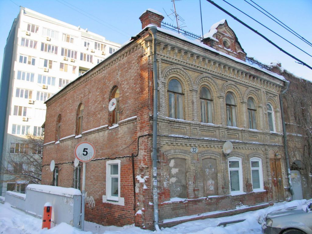 Объёмно-пространственная композиция объекта культурного наследия: - здание двухэтажное, с подвалом, кирпичное, прямоугольное в плане, деревянным балконом со стороны дворового фасада,- конфигурация, габариты в плане и по высоте (включая высотные отметки крыши) здания.Строительные конструкции здания:- фундамент,- наружные и внутренние капитальные стены. Композиционное построение и декор фасадов:Главный фасад:- внешний архитектурный облик здания решен в стиле эклектика с элементами неорусского стиля,- характер фасадной поверхности – стены выполнены из красного керамического кирпича, не оштукатурены, окраска двуколерная,- количество, осевое расположение, конфигурация оконных проемов:в уровне первого этажа – проемы с лучковой перемычкой, профилированными наличниками, объединенными в единую композицию. Первоначальные оконные заполнения – двухстворчатые с фрамугой,в уровне второго этажа – проемы с полуциркульным завершением, профилированными наличниками из несколько уровней фигурного кирпича, сухариками. В междуоконных простенках - дорические полукруглые пилястры из фигурного кирпича, - подоконные карнизные пояса: в уровне цокольного этажа – с нишами, в уровне второго этажа с нишами и сухариками,- дверной проем парадного входа с первоначальным дверным полотном, - пилястры рустованы в уровне первого этажа, с нишами и модульонами в уровне второго этажа,- венчающий карниз с кронштейнами из фигурного кирпича и поясом поребриков,- аттиковая стенка - фигурная в форме кокошника, с круглым слуховым окном-люкарной,- парапетные столбики с кованым ограждением.Боковой фасад:- оконные проемы с арочной перемычкой, первоначальные оконные заполнения – двухстворчатые с фрамугой,- венчающий карниз с сухариками.Дворовый фасад:- оконные проемы с лучковой перемычкой, наличником.